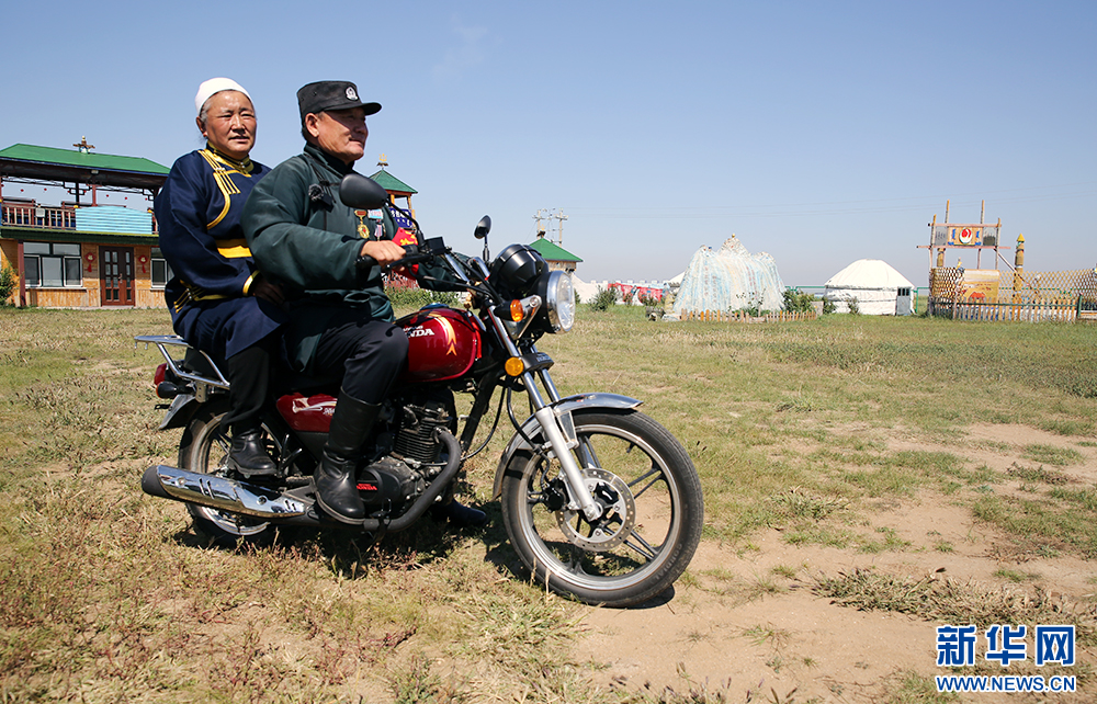 8月27日,图门和妻子索丽从院子里骑着摩托车出发去巡边。新华网石毅 摄