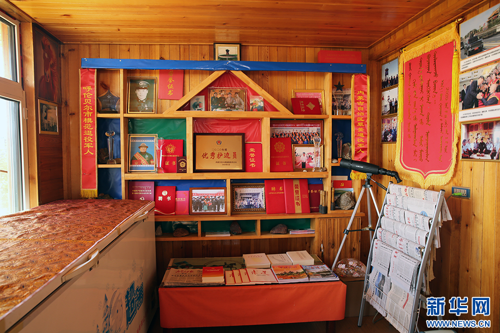 图门家墙壁上,摆满了一家三代戍边的照片和荣誉证书。新华网石毅 摄