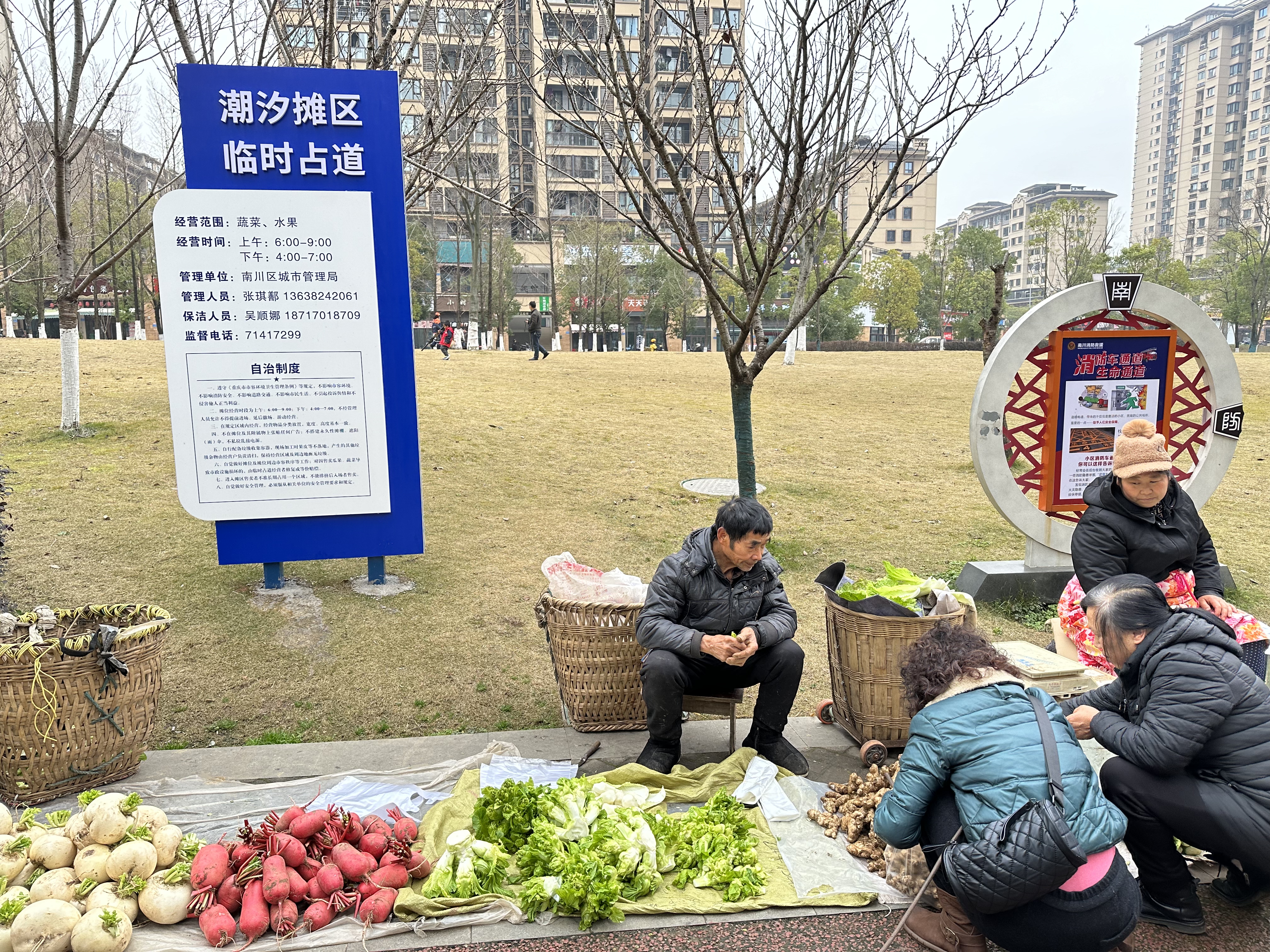 去年4月以来,南川区探索在小区周边等区域设立“潮汐摊区”,目前已设置摊区31处、摊位2100余个,引导瓜果农、流动菜农、经营摊贩免费入位规范经营,实行“摊位+摊主自治”模式,早中晚定时、规范定点、统一管理。“这让居民在家门口就能吃上新鲜瓜果蔬菜,也有助于规范流动摊贩管理。”南川区城市管理局局长姚涛说。