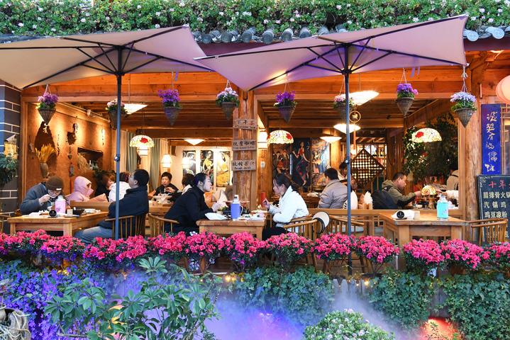 2024年1月7日,游人在云南丽江古城享受美食。新华社发(赵庆祖 摄)
