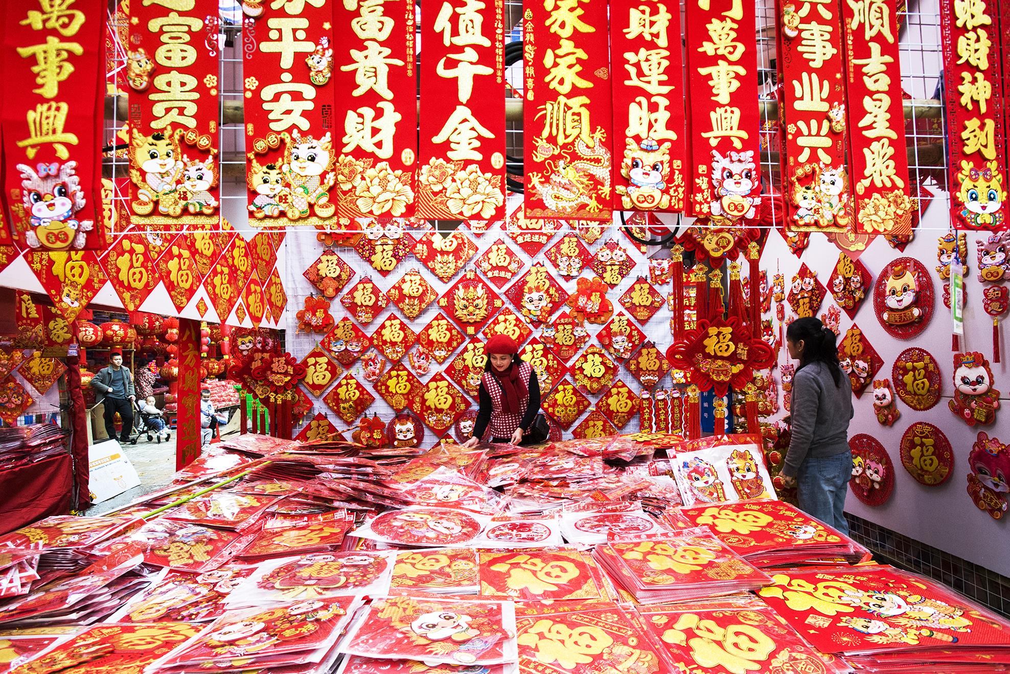 2024年1月13日,市民在广西南宁市上海路年货市场选购新春饰品。新华社发(赵京武 摄)