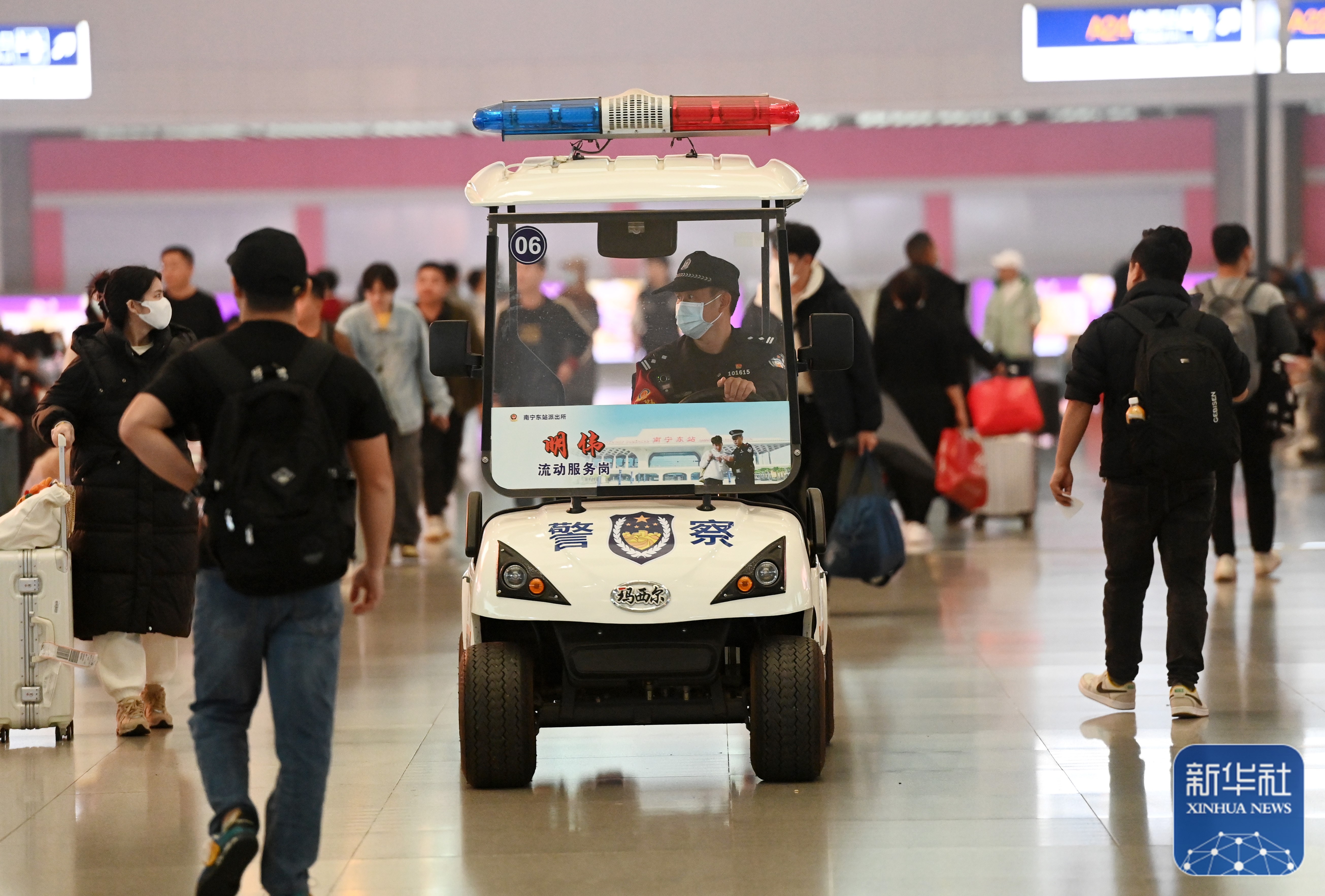 ↑1月8日,高明伟在南宁东站巡逻。