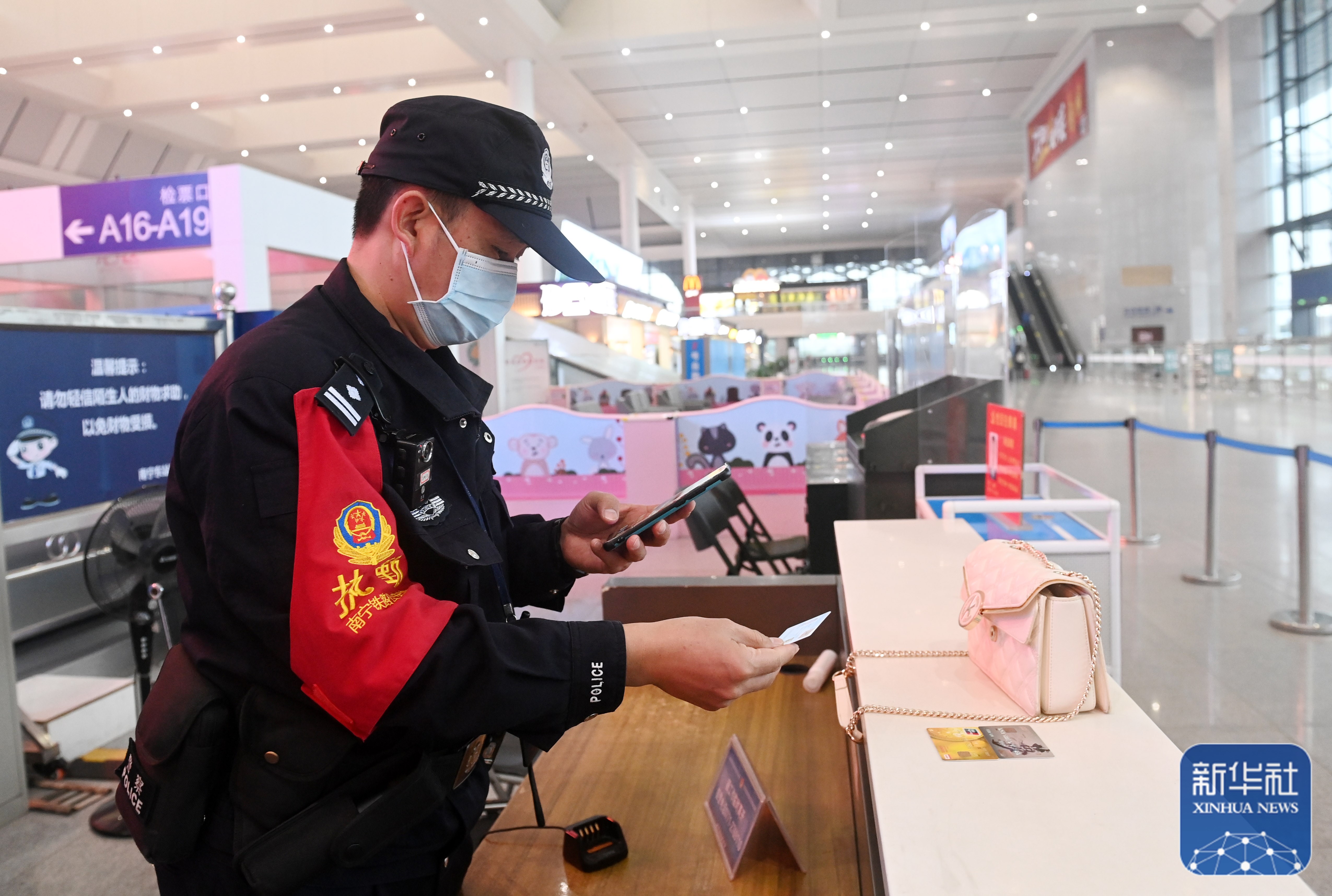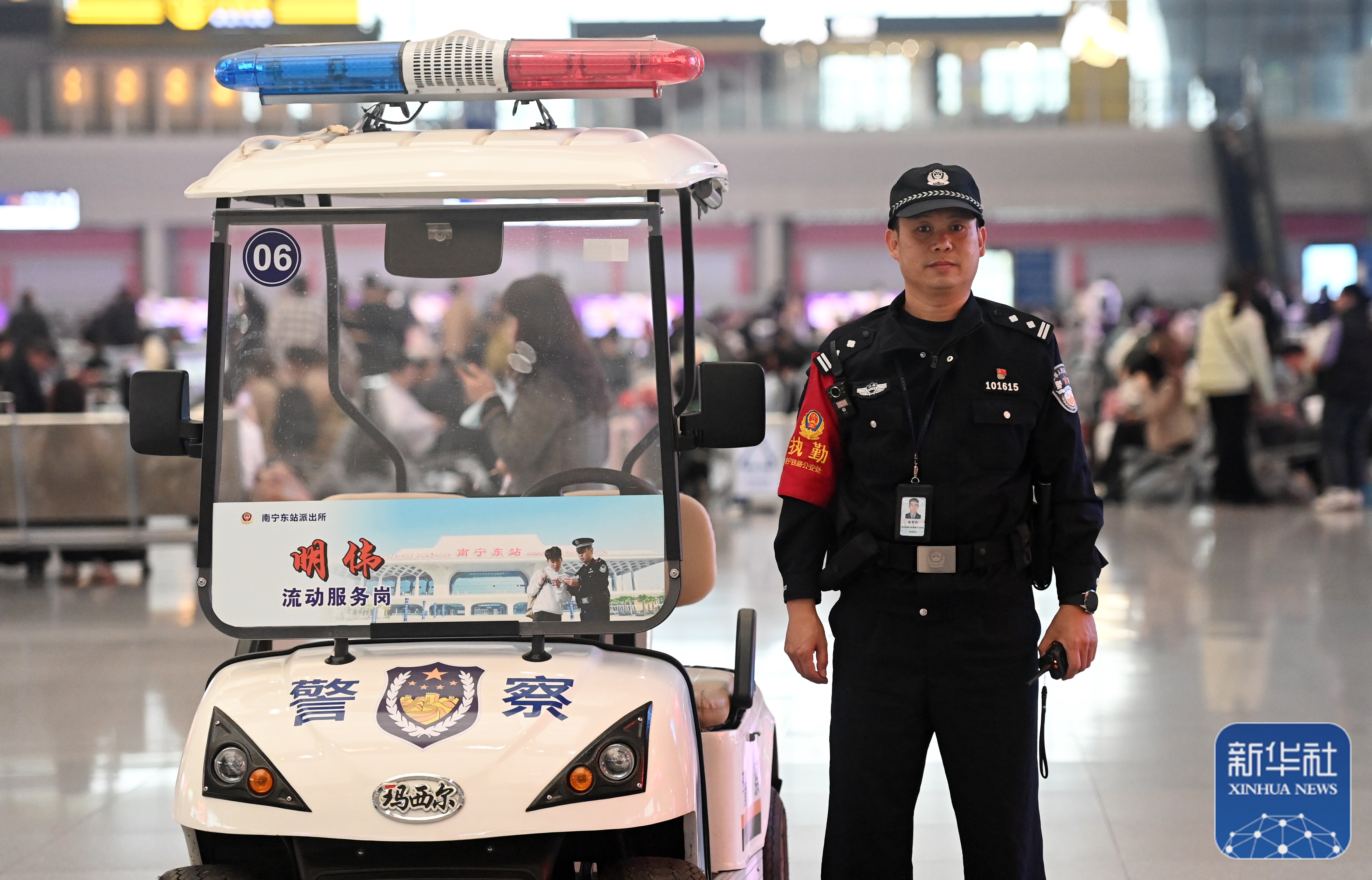 ↑1月8日,高明伟在南宁东站执勤。