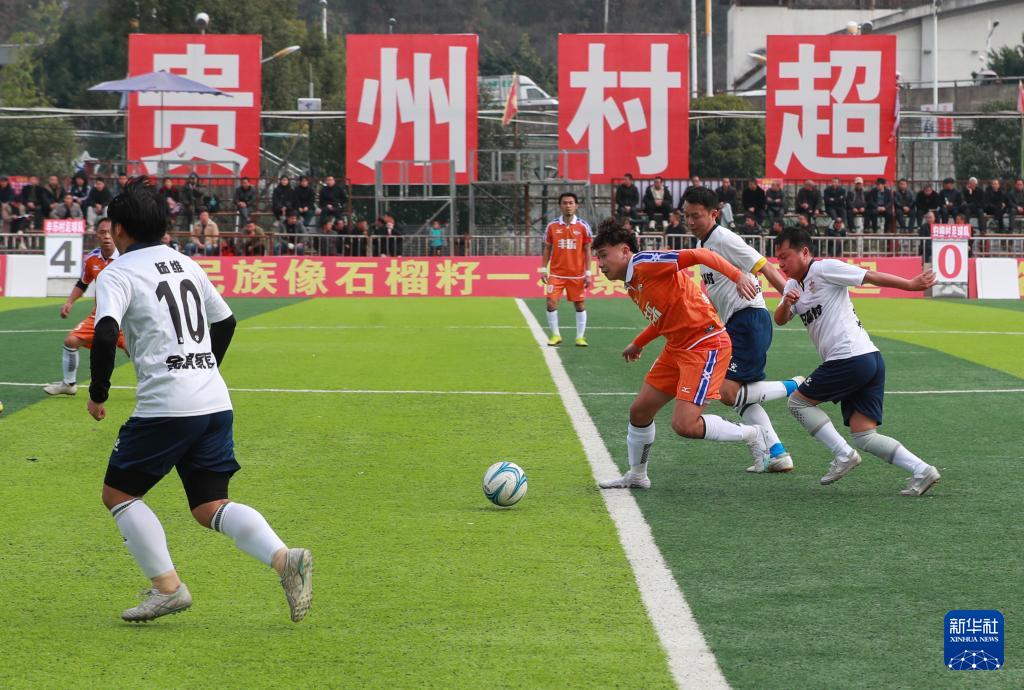 1月6日,在贵州省榕江县“村超”球场,两支村级球队进行比赛。新华社发(罗京来摄)