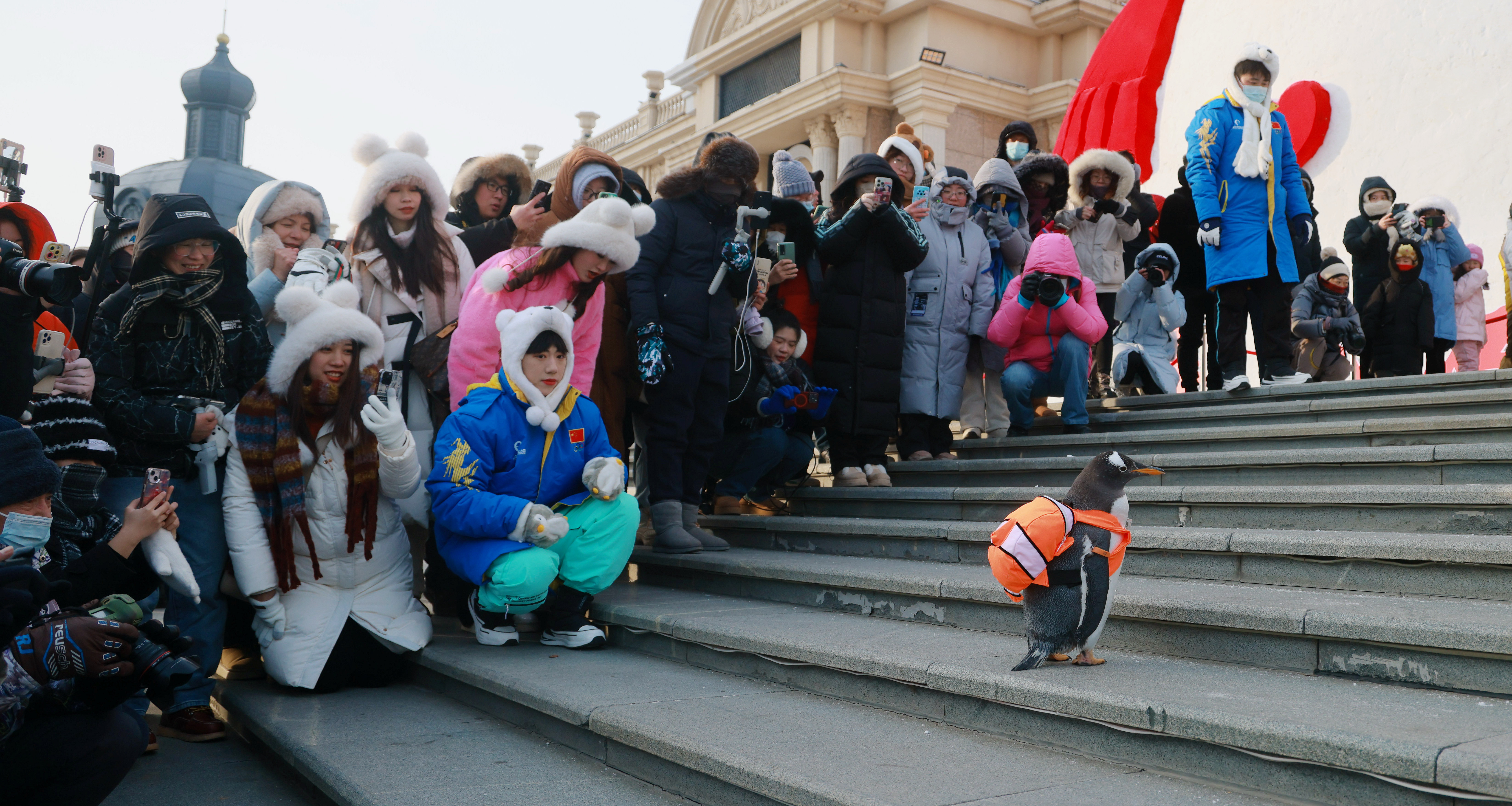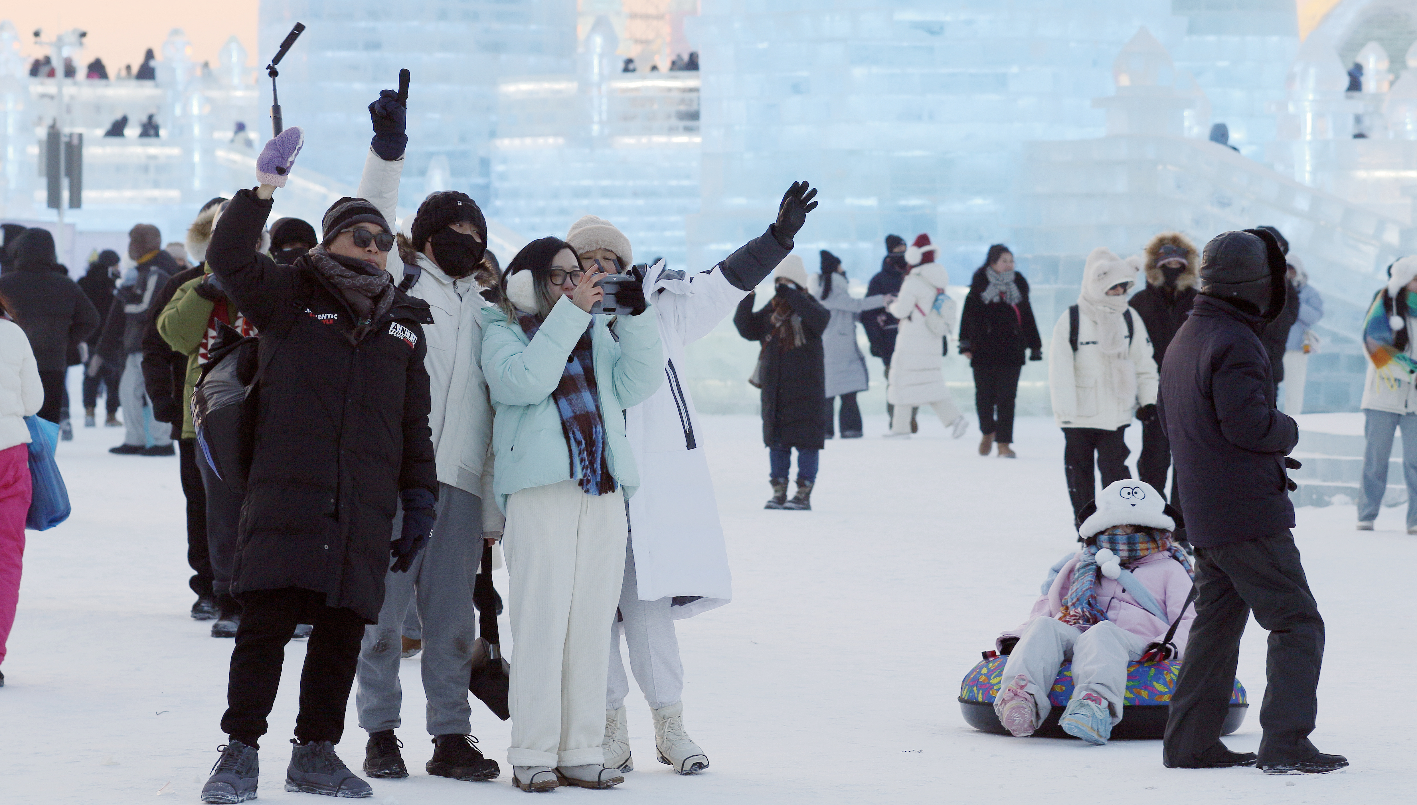 五彩斑斓的“小公主”们和“小金豆”们徜徉在大街小巷,手里的哈尔滨红肠、马迭尔冰棍、尹胖子油炸糕,为这个冬天增添了别样的韵味。中央大街、红专街早市、道里菜市场人流熙攘,冰雪大世界、雪乡、亚布力滑雪场、漠河等地“热雪沸腾”,酒店和澡堂里一排排行李箱拉满氛围,淘学企鹅憨态可掬、大雪人温暖治愈,万人大蹦迪、超级冰滑梯、泼水成冰……勾勒出一幅幅风情绝美的“北国画卷”。