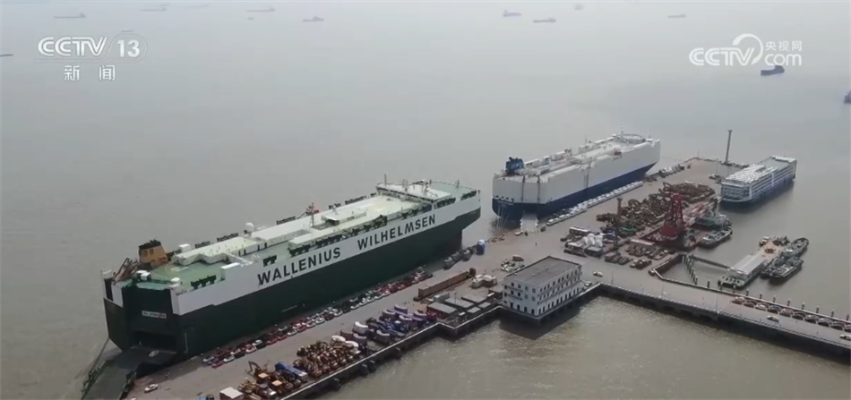 上海海通码头运营部总监 程云波:出口而且增长的幅度相当大,主要还是以这个新能源(汽车)为主,去年(2023年)的新能源(汽车)占比出口的百分之三十以上。