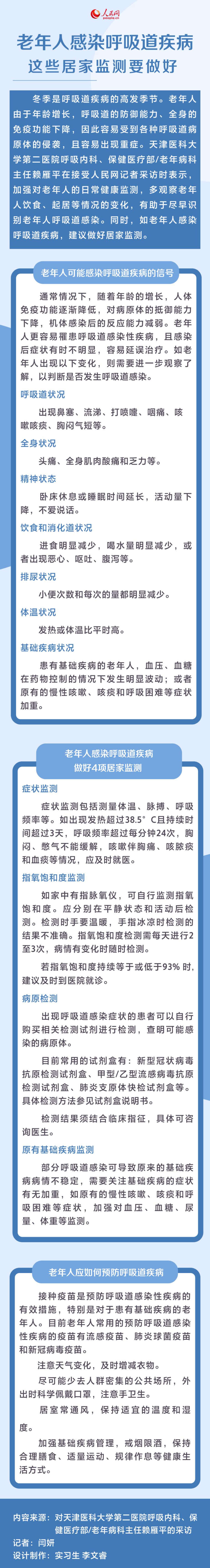 老年人感染呼吸道疾病 这些居家监测要做好