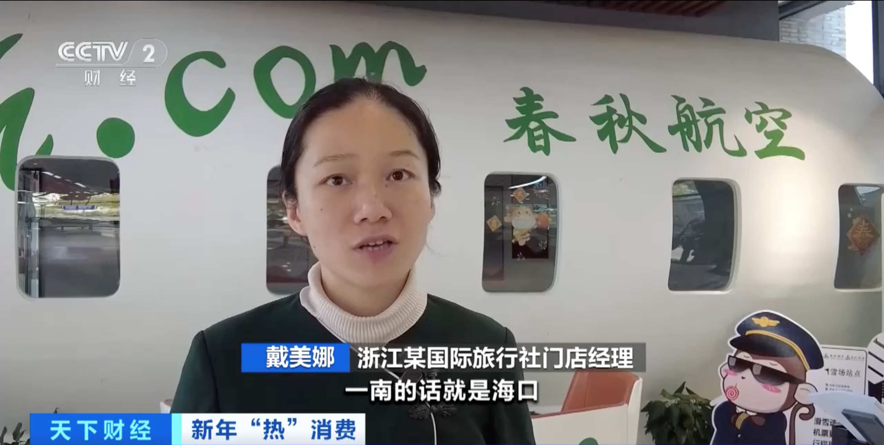 浙江某国际旅行社门店经理 戴美娜:国内,南方飞海口的线路比较旺;北方目前最火的是哈尔滨,都想去那边打个卡。