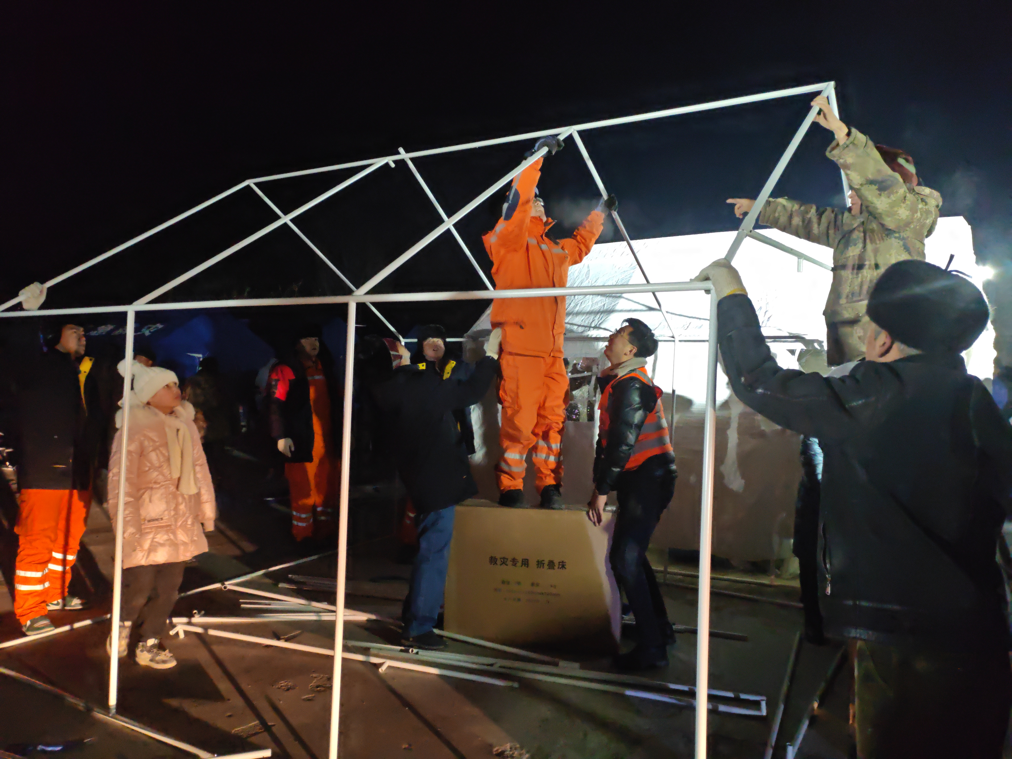 不光电力部门、消防部门、应急部门,记者在多个安置点走访看到,受灾群众积极主动,有自告奋勇为大家烹饪抓饭的,有帮救援人员搭建帐篷的,有维持秩序分发物资的……天气虽然寒冷,但每个人心里都暖暖的。