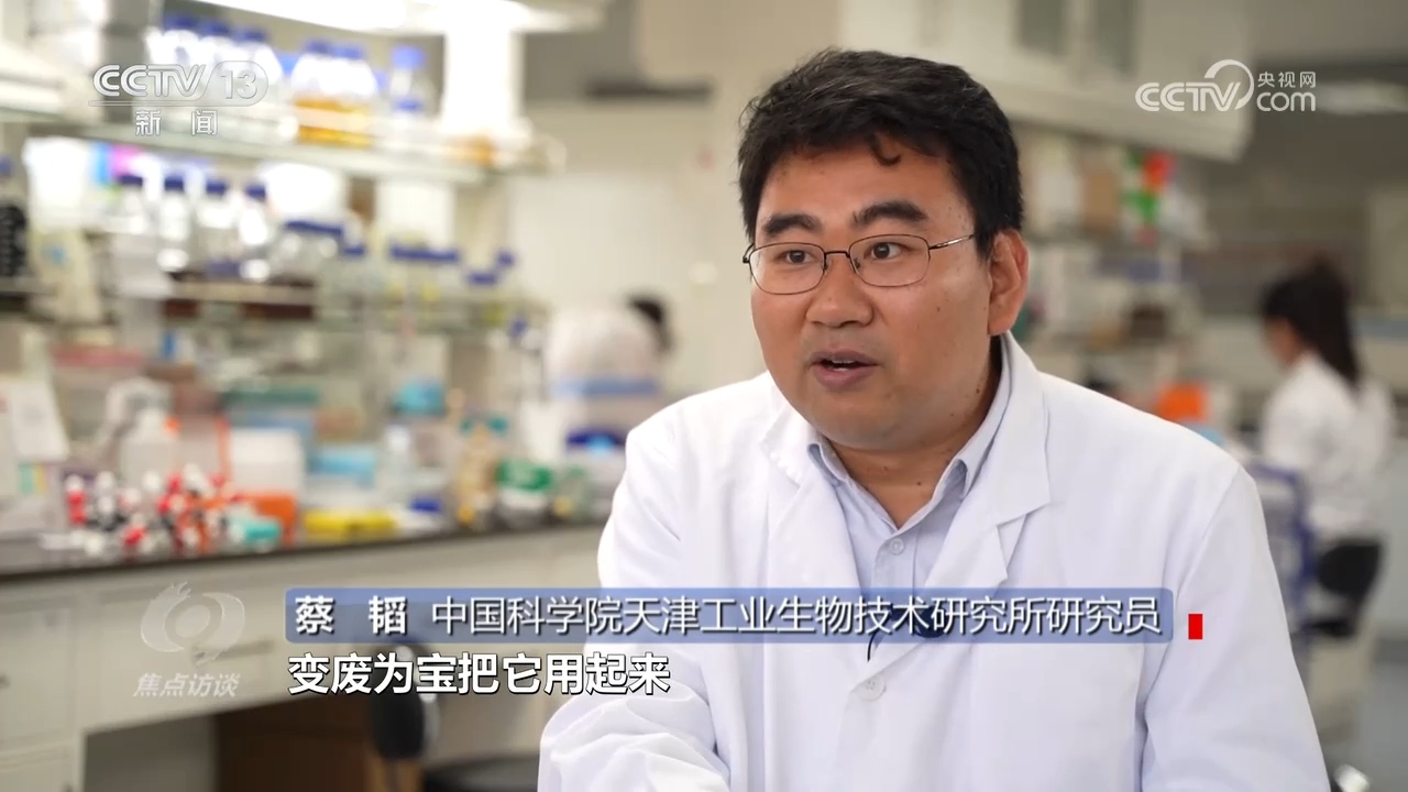 中国科学院天津工业生物技术研究所研究员蔡韬:“一方面可以把很多废弃的、可能会对环境造成影响的二氧化碳变废为宝用起来;另一方面,可以在工业化的车间里合成淀粉,节约80%到90%的土地和淡水。”