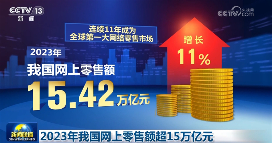 商务部1月19日发布的数据显示,2023年,我国网上零售额15.42万亿元,增长11%,连续11年成为全球第一大网络零售市场。其中,实物商品网络零售额占社会消费品零售总额比重增至27.6%,创历史新高。绿色、健康、智能、“国潮”商品备受青睐,国产品牌销售额占重点监测品牌比重超过65%;在线服务消费更多元,在线旅游、在线文娱和在线餐饮销售额增长强劲,对网络零售增长贡献率达到了23.5%。