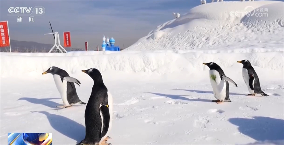而太原市晋源区的一处景区则引进了4只在哈尔滨完成适应过程的企鹅,小家伙们的模样憨态有趣,走路摇摇摆摆,在雪场里东瞅瞅西看看,十分可爱,引得市民游客围观拍照。