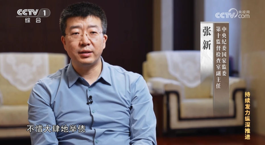 张新(中央纪委国家监委第十监督检查室副主任):他严重违反政治纪律、政治规矩,非常突出的问题就是违背新发展理念,盲目举债搞劳民伤财、破坏生态环境的形象工程、政绩工程,使得他所任职的地方政府性债务债台高筑,对他所任职地区的经济社会高质量发展造成严重影响。