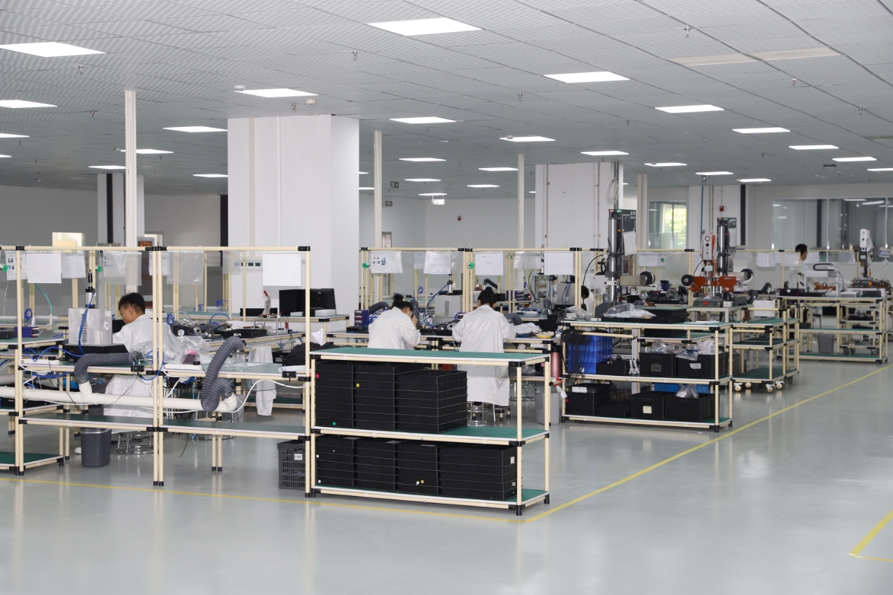 2023年10月,在天津宜科自动化股份有限公司的生产车间,作业员在组装产品。新华社发