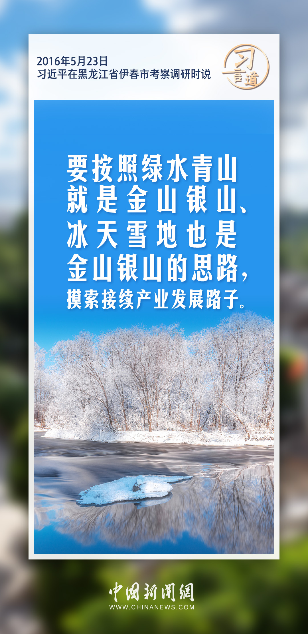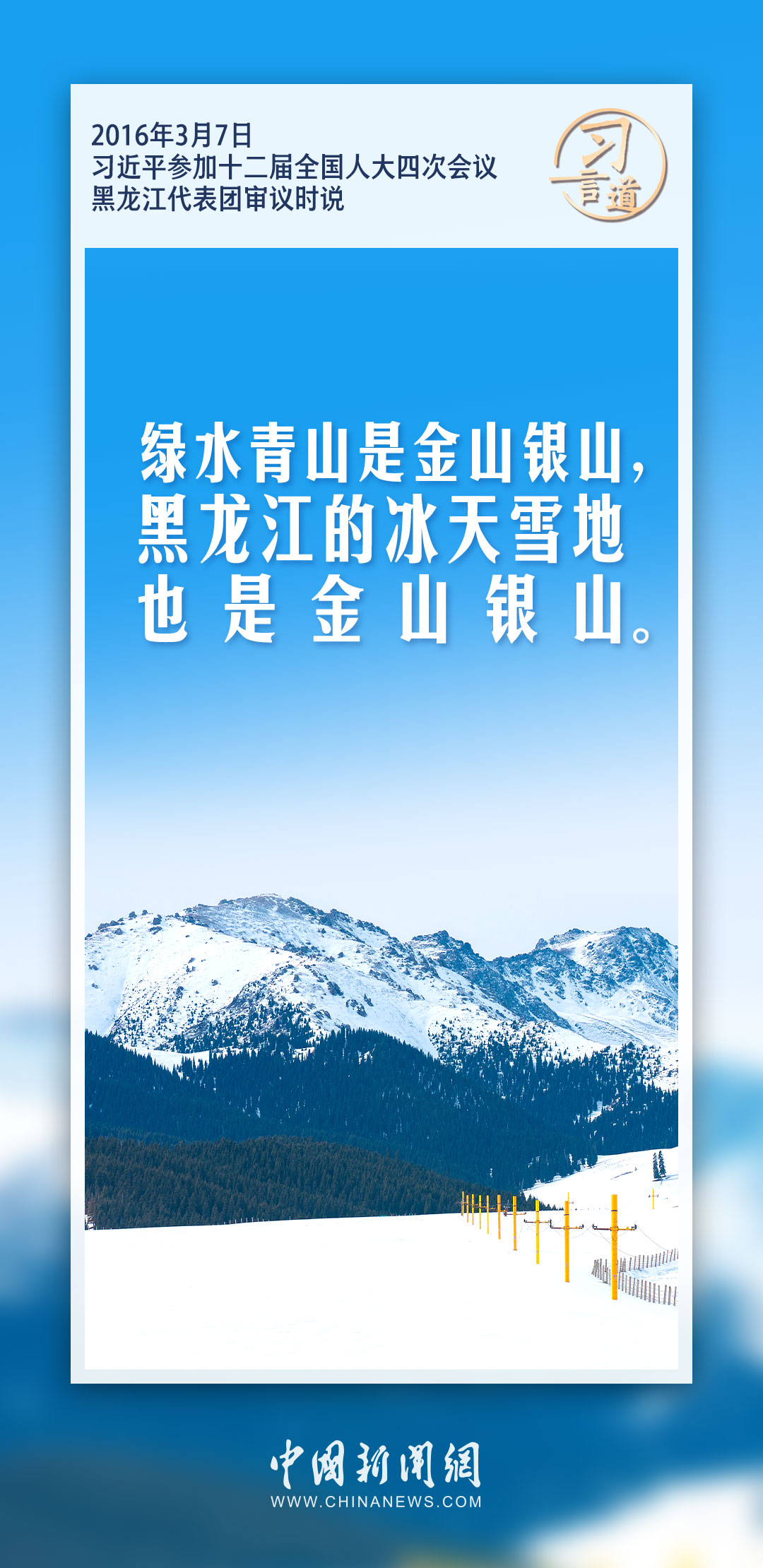 冰天雪地也是金山银山。习近平总书记多次阐述发展冰雪经济与保护冰雪生态的有机统一关系。习近平指出——