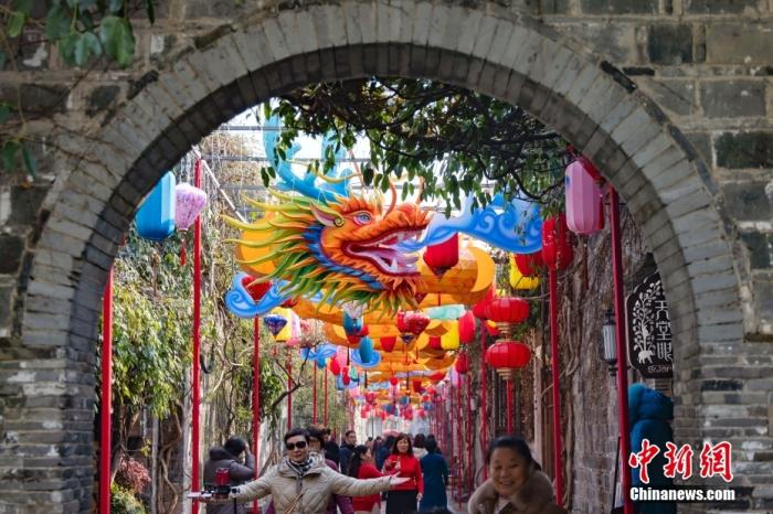 资料图:腾龙灯彩亮相南京城南老街,营造新年喜庆氛围。中新社记者 泱波 摄