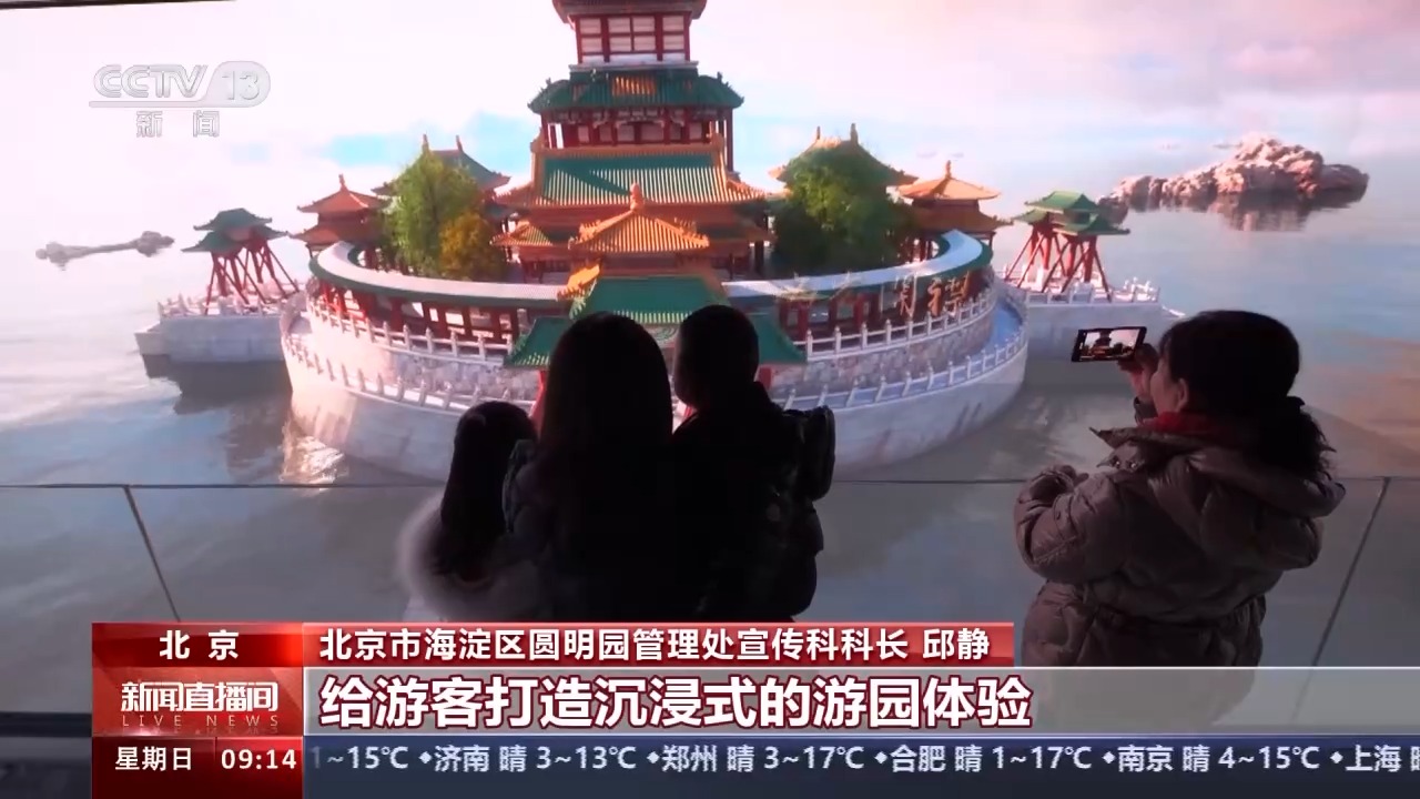 北京市海淀区圆明园管理处宣传科科长 邱静:我们设计了五个活动区域,包含了博物馆大观、新春市集、新春宫廷游艺以及老字号品牌展示等等。我们的博物馆大观区域汇聚了全国各地的博物馆文化及特色的文创产品,以及VR体验和一些特色的博物馆的介绍,让古画中的场景走进现实,给游客打造沉浸式的游园体验。