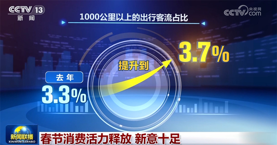 丰富多样的文旅活动带动消费热潮。大数据发现了这样的变化,人们出行的脚步越走越远,1000公里以上的出行客流占比由去年的3.3%提升到了3.7%。假期首日,旅游订单同比增长1倍多,各类门票订单同比增长超3倍。