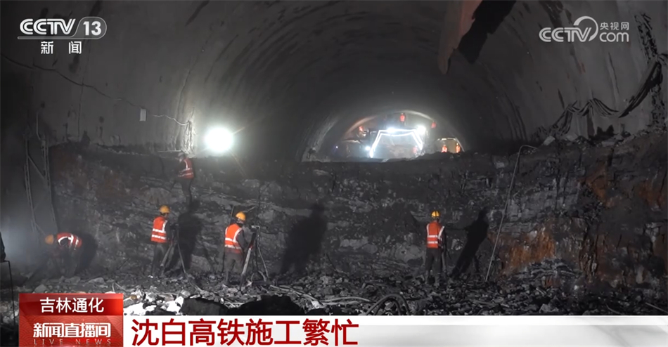 2020年10月开工建设的沈白高铁项目全长近430公里,设计时速350公里/小时,是东北东部地区客运主通道,预计2025年竣工。建成通车后,北京至长白山的运行时间将缩短至4个半小时。春节期间,沈白高铁吉林通化段的隧道建设工地依然繁忙。为保证2025年如期建成通车,施工人员日夜奋战,确保高铁建设顺利推进。