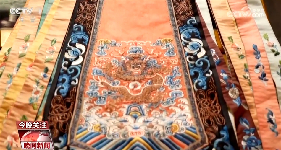 服装设计师 林栖:特别是前期的时候,(马面裙)它的龙头特别大,龙的头可能占到整个龙纹的三分之二左右,它体现的是威严的感觉。后期的时候,整个身体的塑形感以及头的比例是缩(小)的,整个图形是一种气宇昂扬的状态,非常有生命力,这种积极的状态。