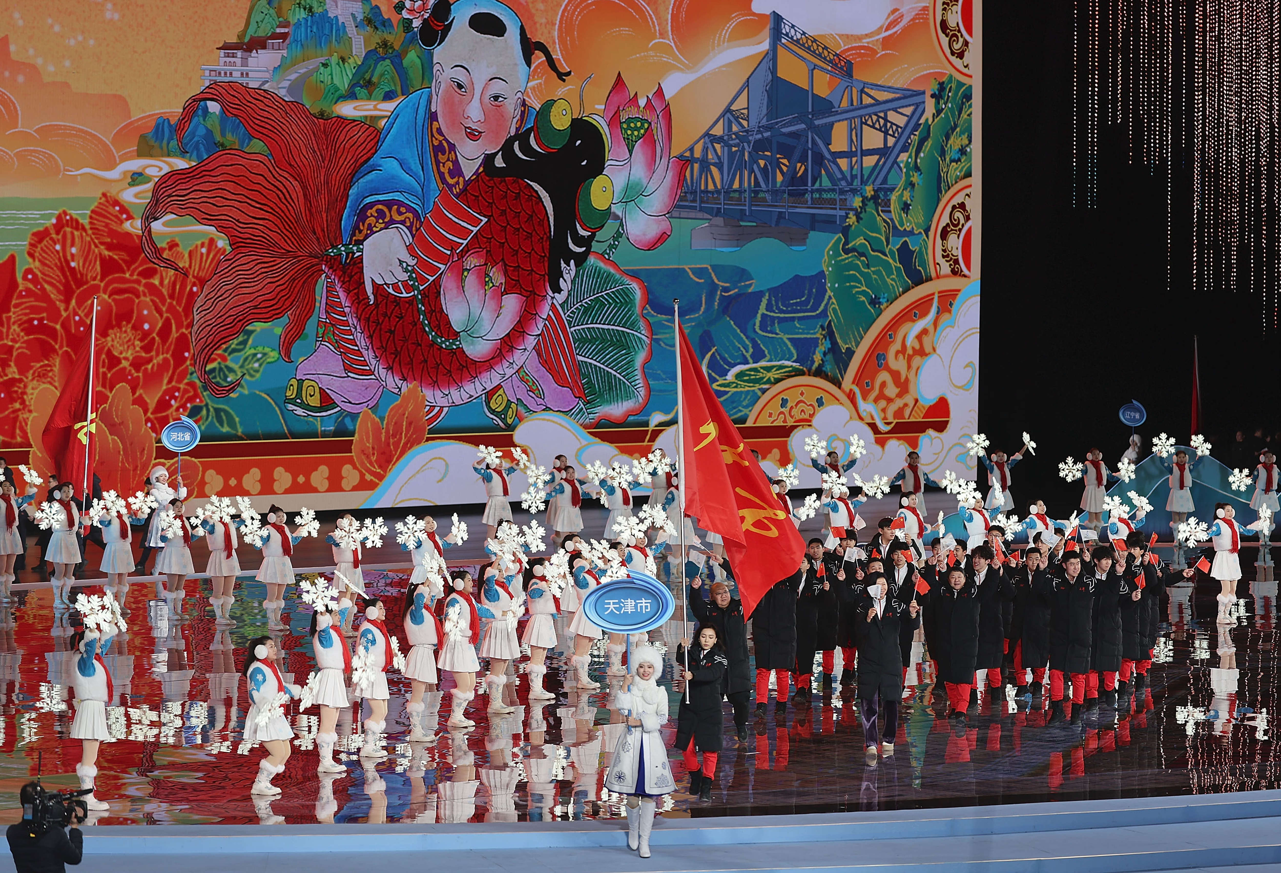 2月17日,天津市体育代表团在开幕式上入场。当晚,第十四届全国冬季运动会开幕式在内蒙古呼伦贝尔市海拉尔区内蒙古冰上运动训练中心举行。新华社记者 姜帆 摄