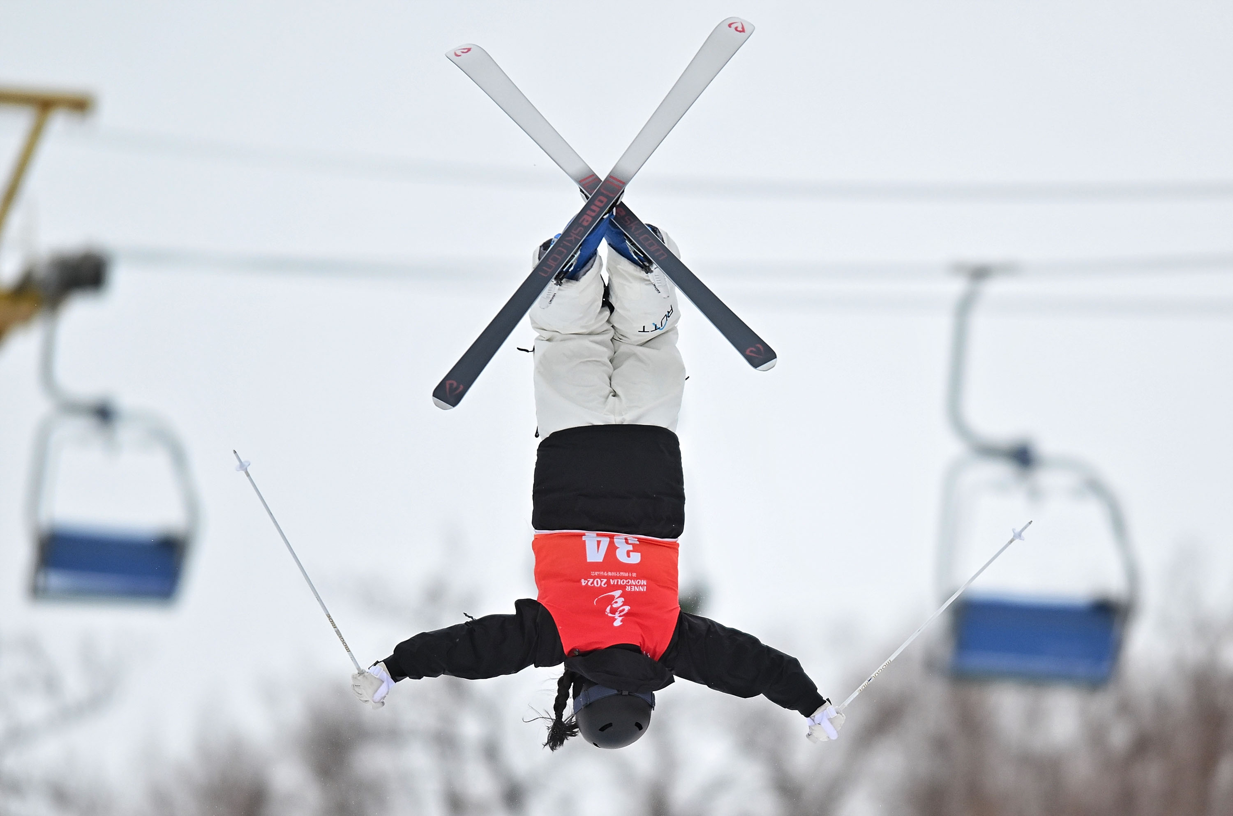 2月18日,河南队选手郝丽赟在自由式滑雪公开组女子雪上技巧决赛中。新华社记者 刘坤 摄