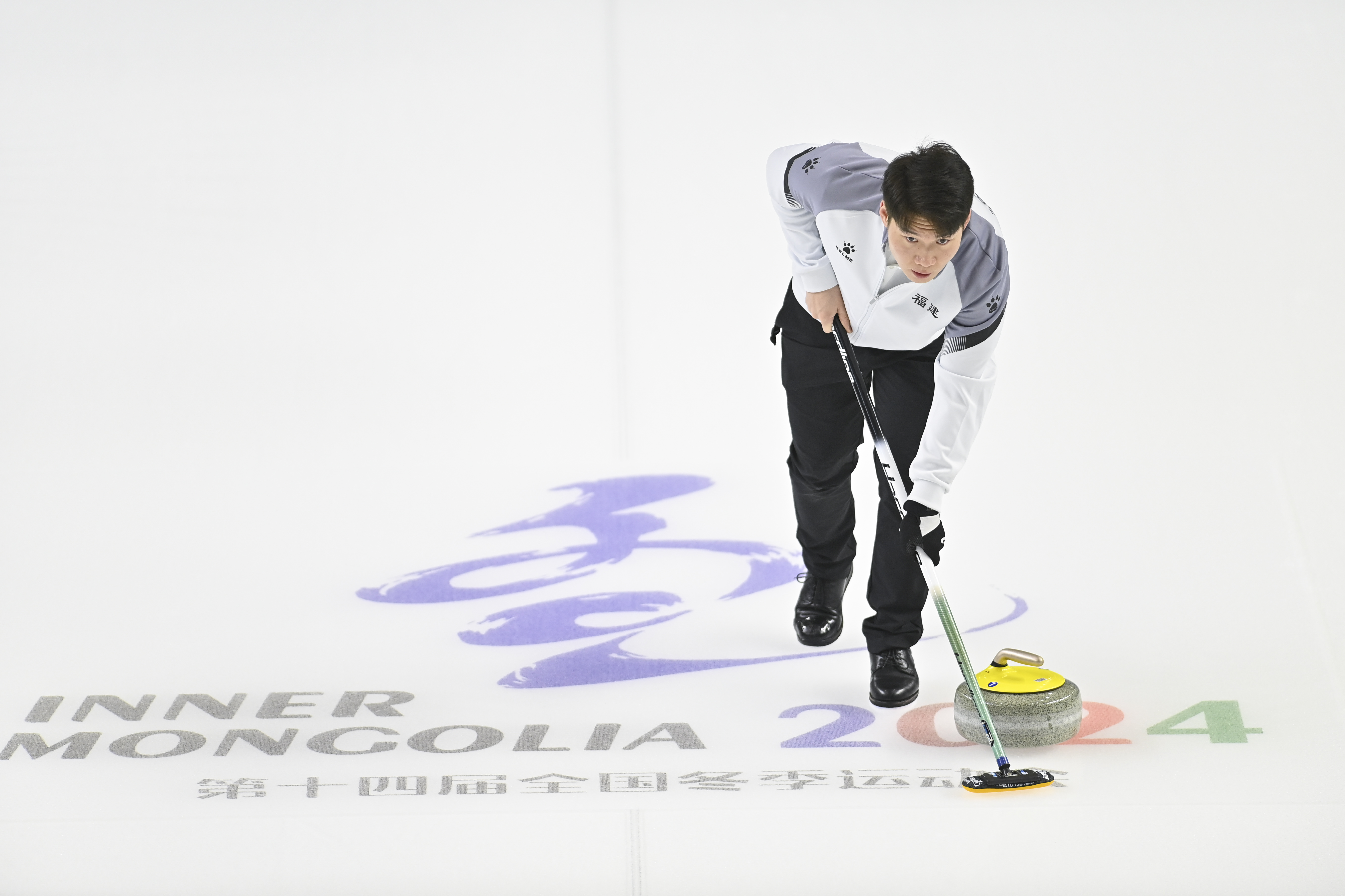 2月16日,福建冰壶队选手朱泽仰旭在比赛中。新华社记者 杨晨光 摄