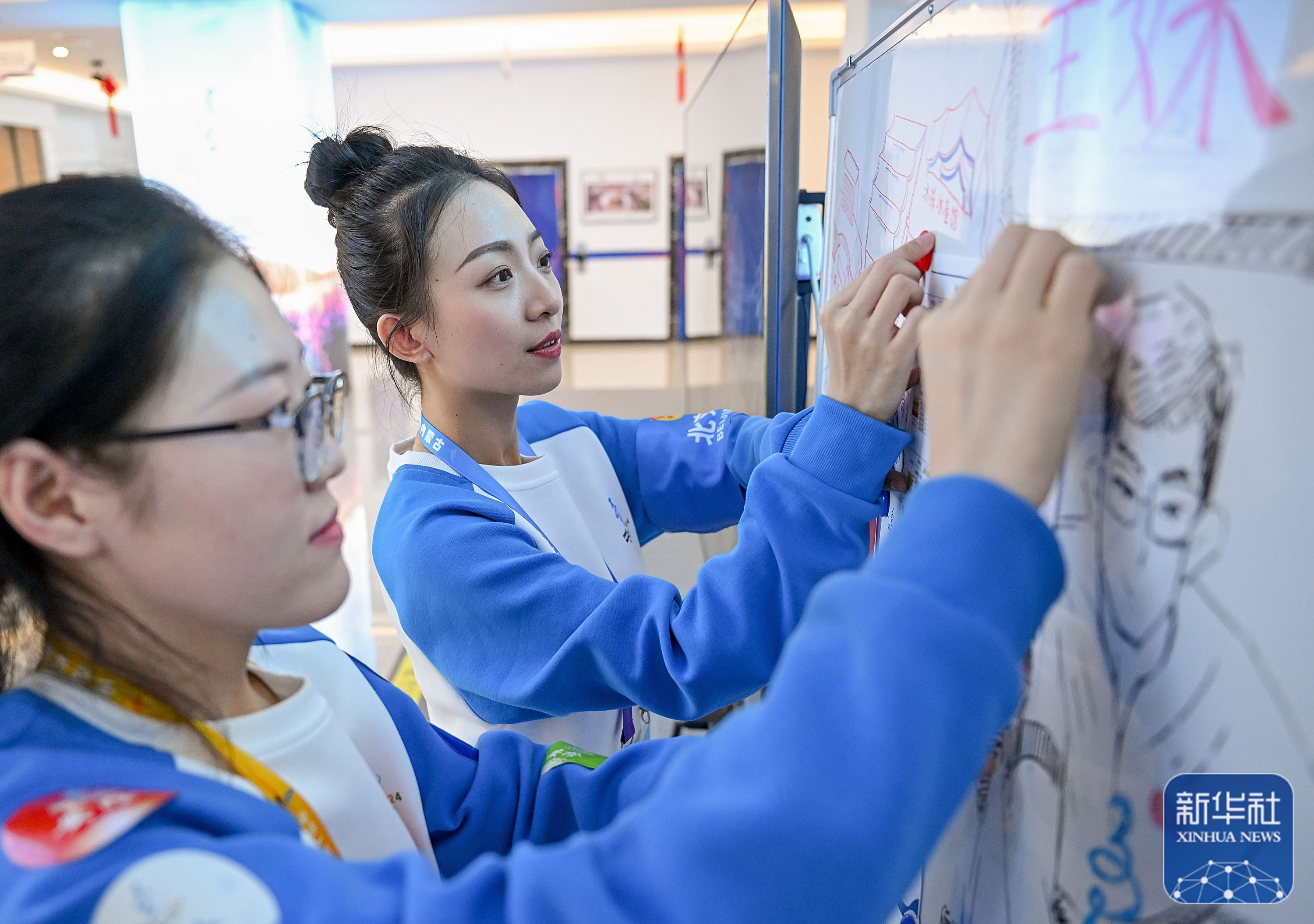 ↑2月19日,志愿者们在媒体服务台工作。新华社记者 连振 摄