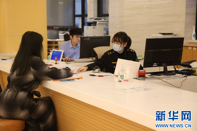 上海市场监管工作人员正在为企业办理业务。(新华社记者程思琪 摄)