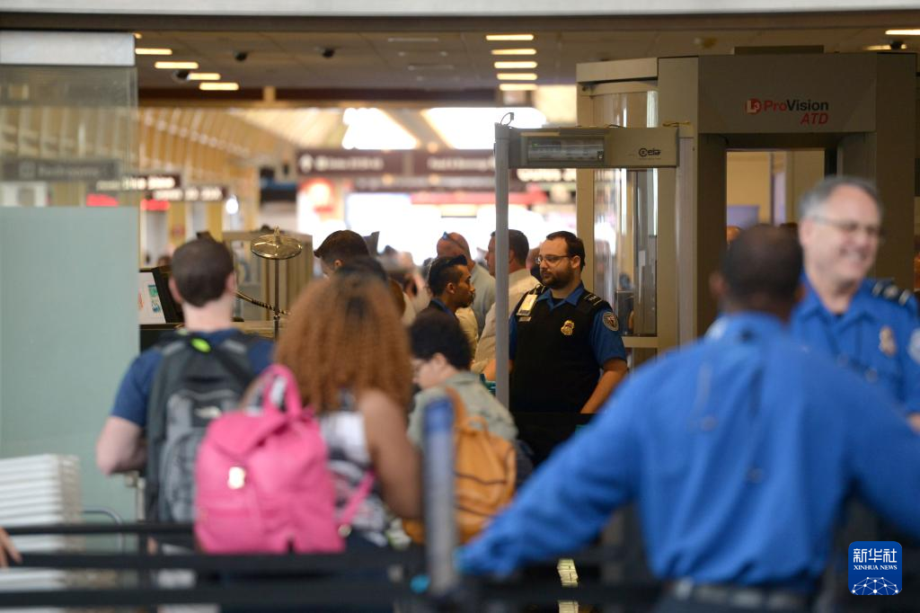 2015年6月2日,安检人员在美国华盛顿里根机场工作。新华社记者 殷博古 摄