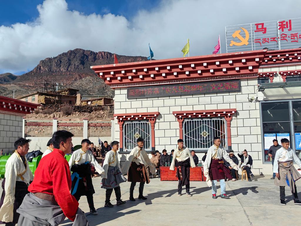 球员们在马利村的“庆元旦迎新年”文艺活动中演出(1月1日摄)