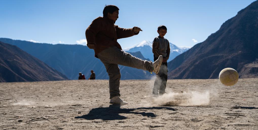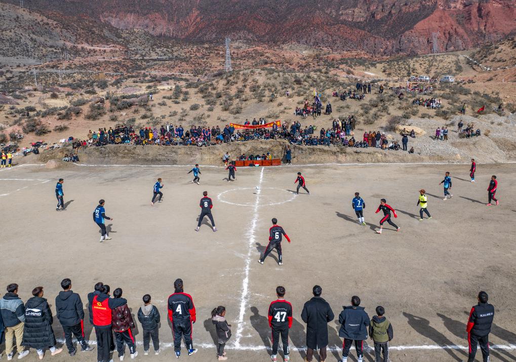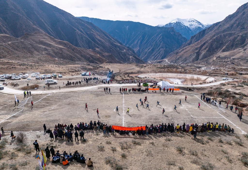 追光丨这场青藏高原“村超”,为什么球场是歪的?