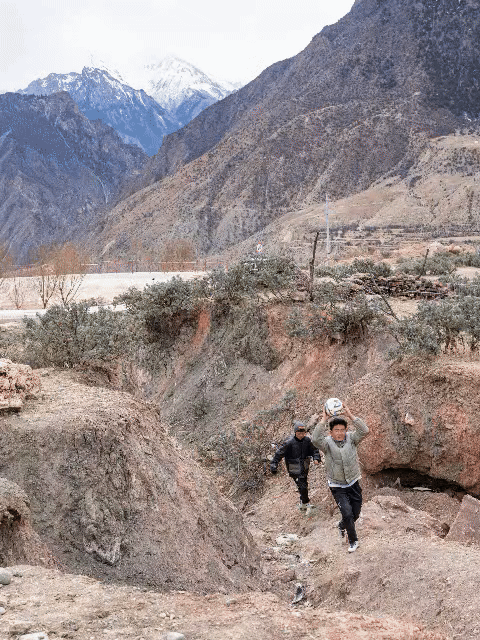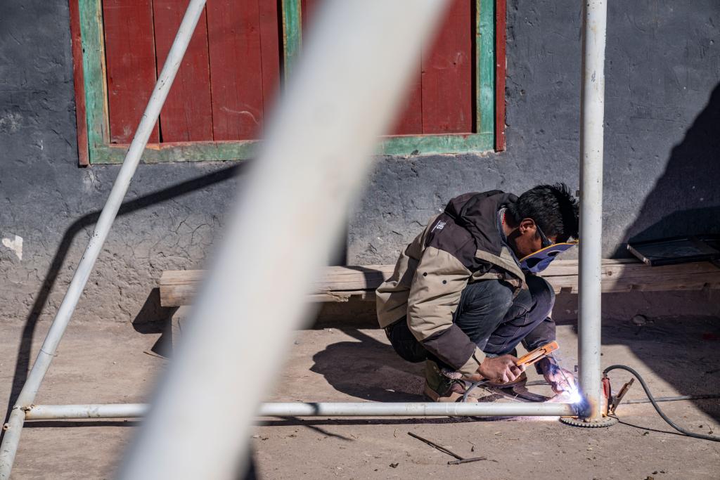 等待焊接的一会儿工夫,村里的孩子们也要跑来和嘎玛群美踢两脚↑