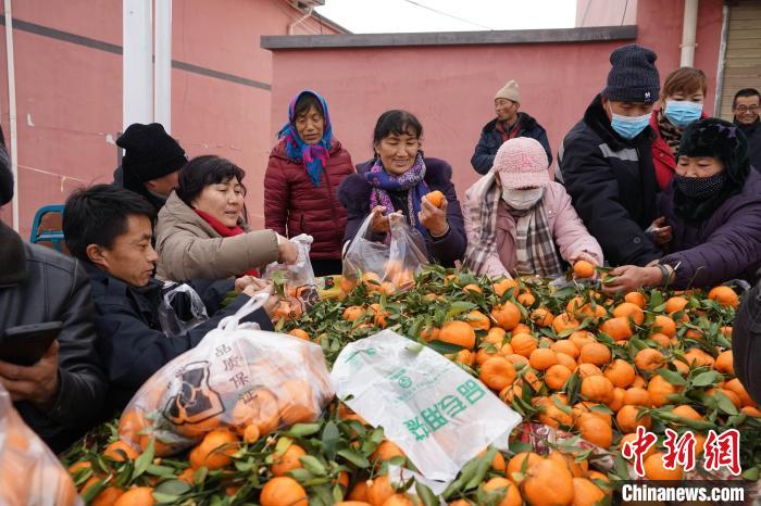 2月7日,青海民和县官亭镇集市内,民众选购橘子。中新社记者 马铭言 摄