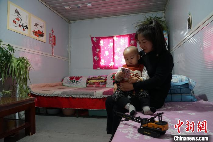 记者在汪平英的“临时小家”中看到,20平方米的空间整齐地摆放着简易家具,3岁的儿子盯着电视中正在播放的动画片入神。“第一次在板房里过春节,虽然没有家里空间大,但只要家人都在一起,都平平安安的就好。”汪平英说,现在该买的年货都买齐了,就等着过年。