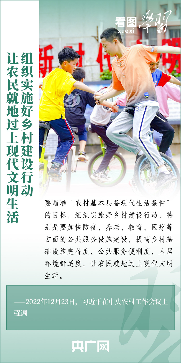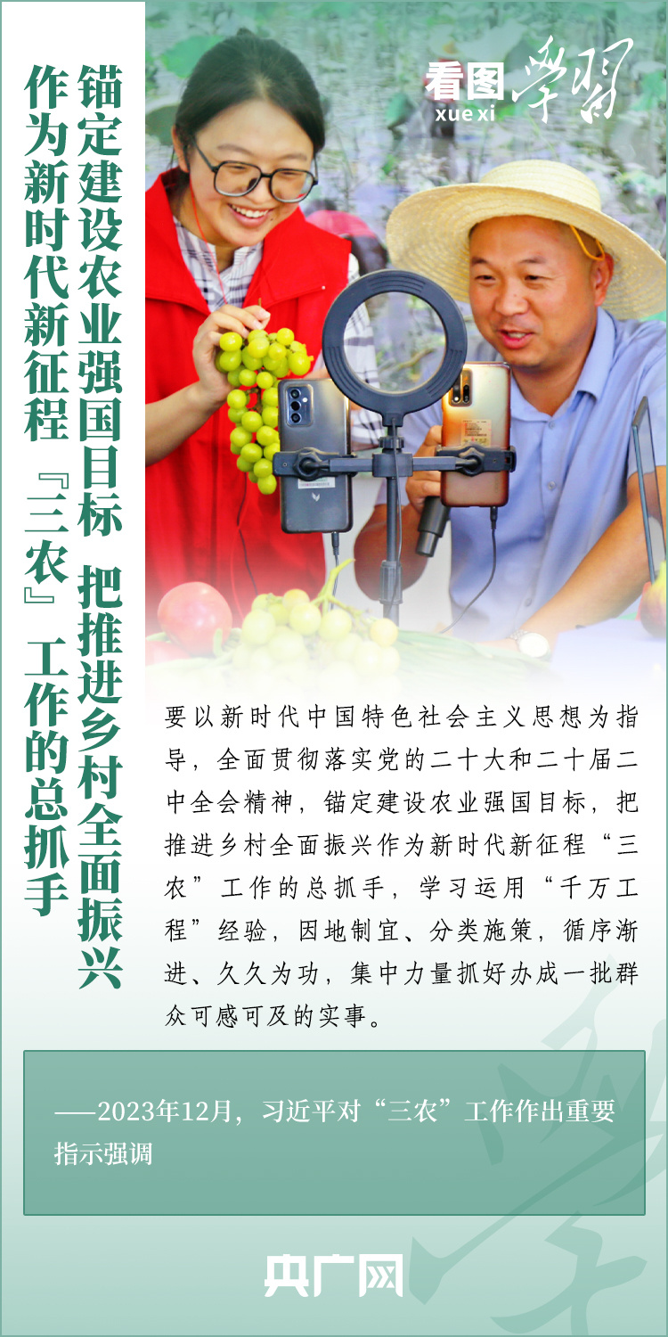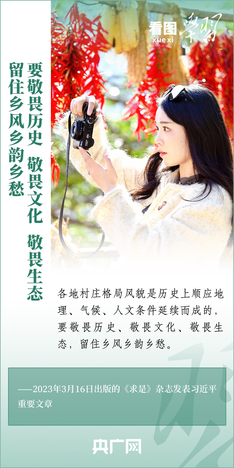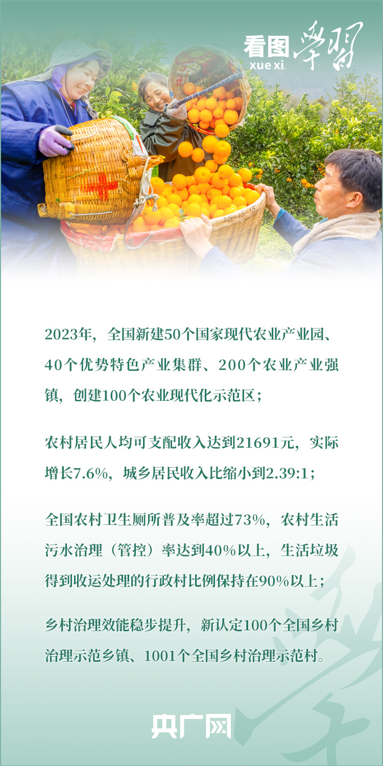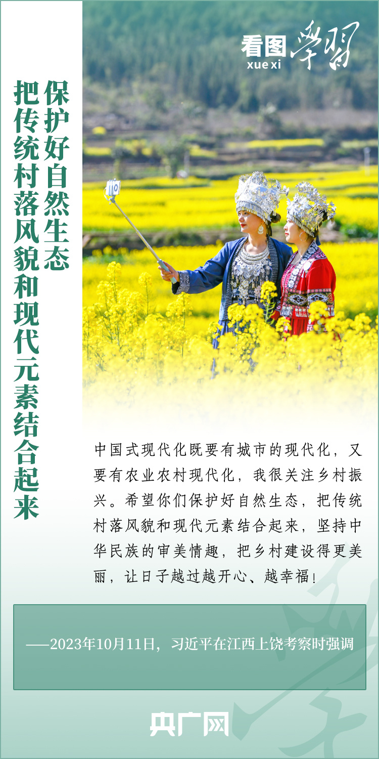 2024年中央一号文件近日发布,要求各地学习运用“千村示范、万村整治”工程经验,有力有效推进乡村全面振兴。文件明确提出,要以确保国家粮食安全、确保不发生规模性返贫为底线,以提升乡村产业发展水平、提升乡村建设水平、提升乡村治理水平为重点,打好乡村全面振兴漂亮仗,绘就宜居宜业和美乡村新画卷。《看图学习》特梳理近两年习近平总书记关于建设宜居宜业和美乡村的重要论述,一起来学习!