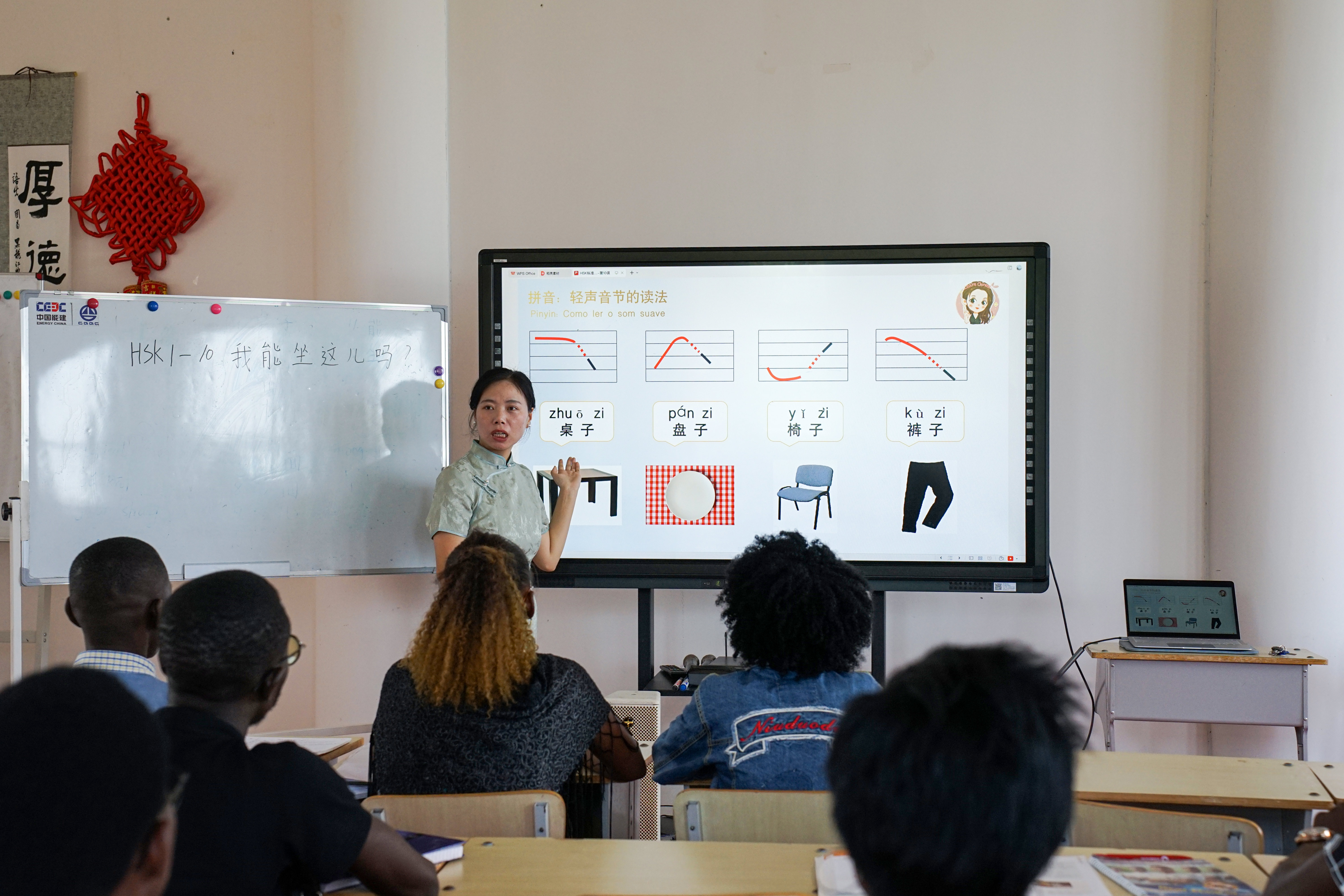 在安哥拉首都罗安达,内图大学孔子学院教师正为学生们讲授中文。