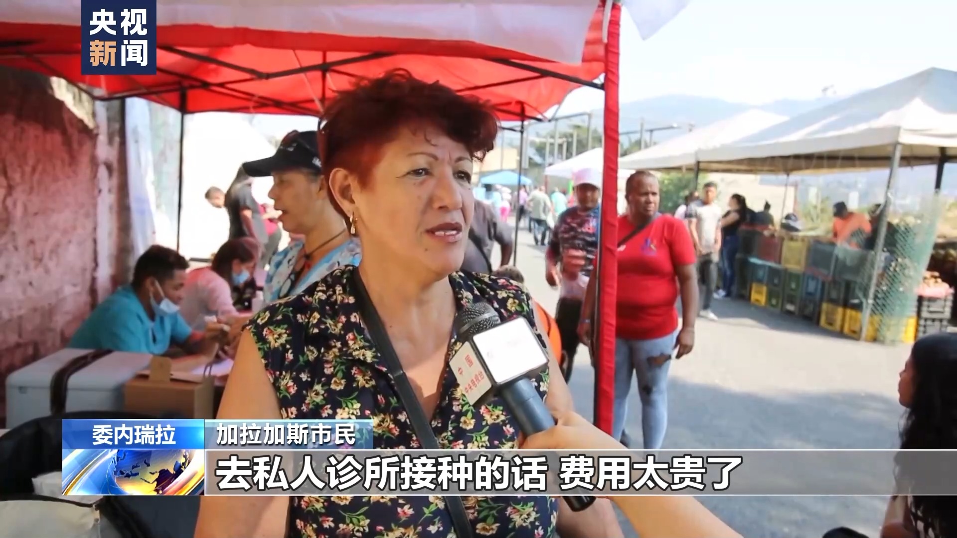 加拉加斯市民:在委内瑞拉,疫苗很难获得。去私人诊所接种的话,费用太贵了。在这里接种是免费的。