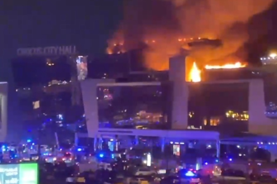 当地时间22日20时左右,俄罗斯莫斯科近郊一音乐厅发生枪击事件,造成至少40人死亡、超过100人受伤。据俄罗斯媒体报道,枪手还投掷了手榴弹或燃烧弹,引发火灾,并造成遇袭大楼顶部坍塌。
