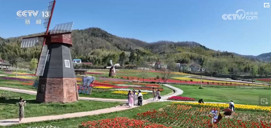 在河南固始,近百万株郁金香迎春绽放,一簇簇、一朵朵,春花盛开、争芳斗艳。一处处色彩斑斓的郁金香在山谷中汇聚成一片五彩斑斓的花海,与周边白墙黛瓦的民居新貌组合而成诗意一般的乡村田园画卷。“赏花经济”延伸了乡村旅游消费新场景,不断丰富游客体验。