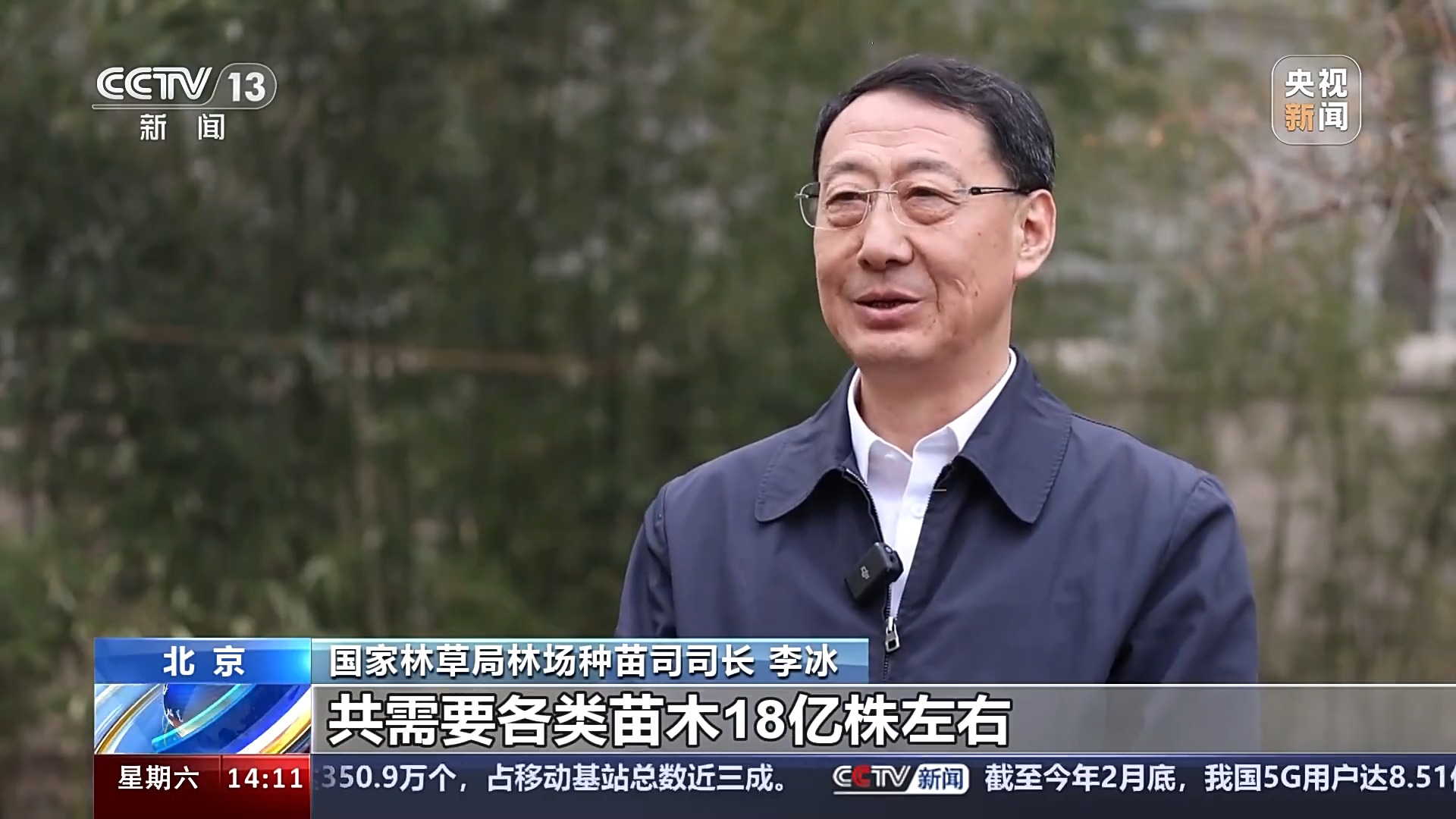 国家林草局林场种苗司司长 李冰:据测算,今年三北工程共需要各类苗木18亿株左右,从当前三北地区苗木储备的情况来看,苗木供应总体上是充足的。