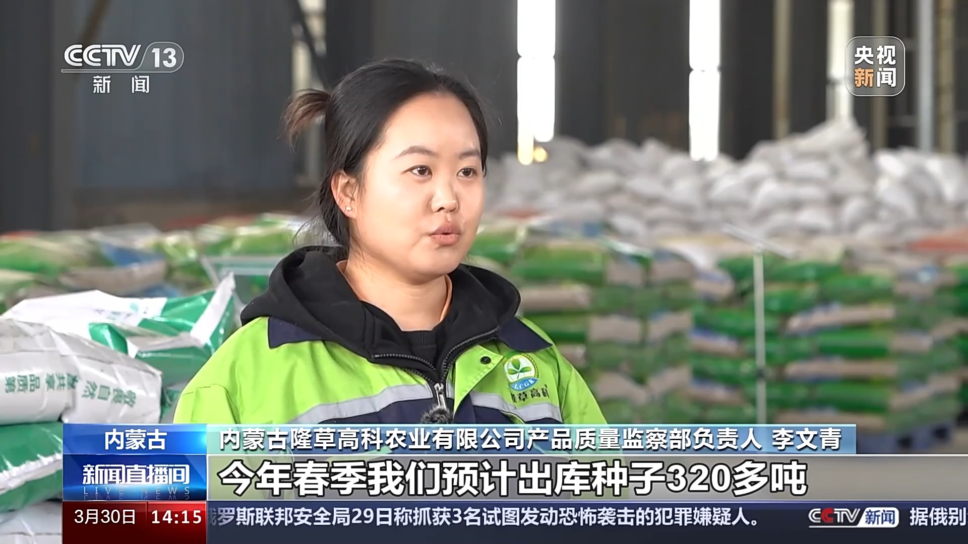 内蒙古隆草高科农业有限公司产品质量监察部负责人 李文青:今年春季,我们预计出库种子320多吨,能够治理的范围达到20万亩。