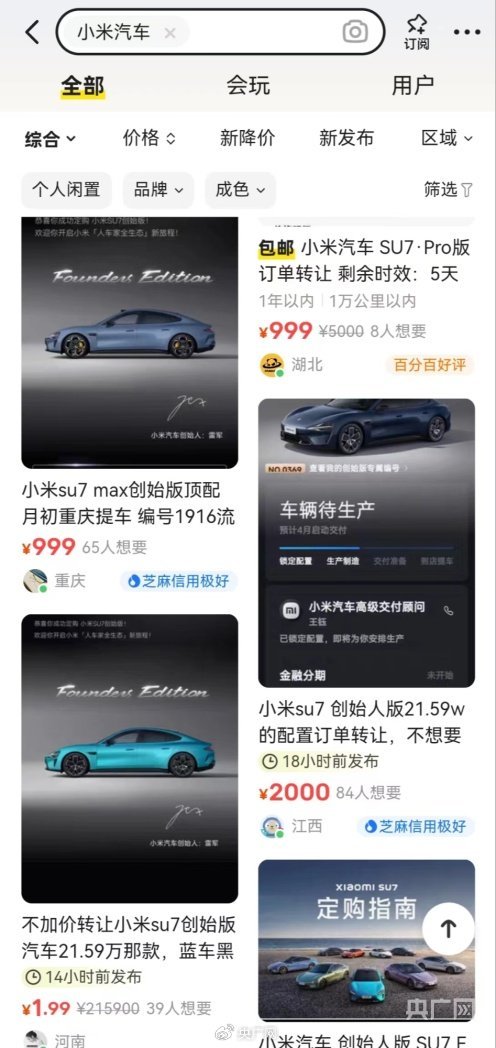 在火爆销售下,记者注意到二手平台出现不少转让订单的信息。付建表示,从法律角度来看,这其实是在转移汽车订购合同的权利义务,只要不扰乱市场公平交易秩序、不侵犯他人和小米汽车公司的合法权益,双方当事人达成合意,自愿购买,该转让行为并不违规。