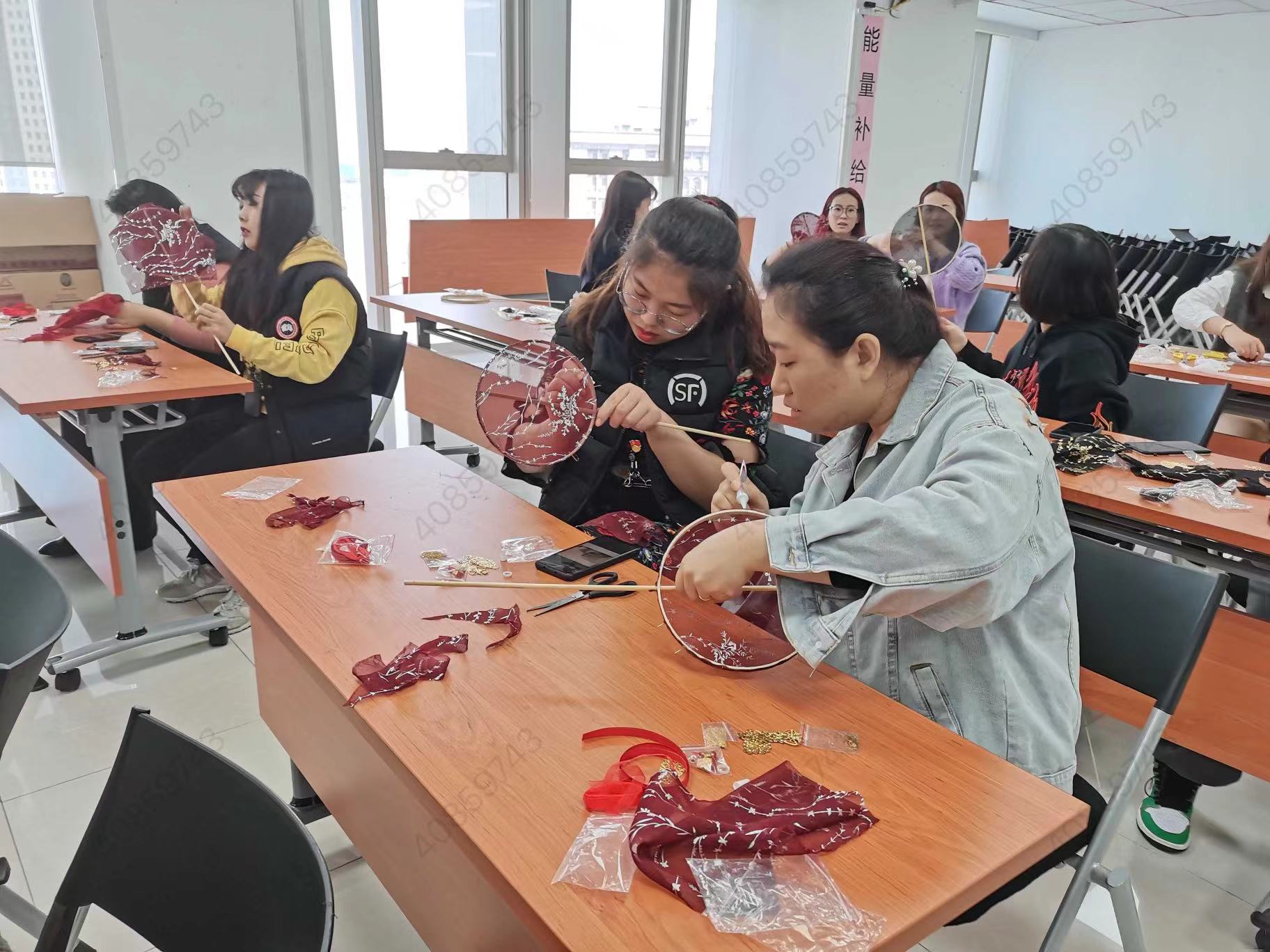 在天津顺丰速递有限公司,女职工们在参加妇联组织的手工活动。新华社发