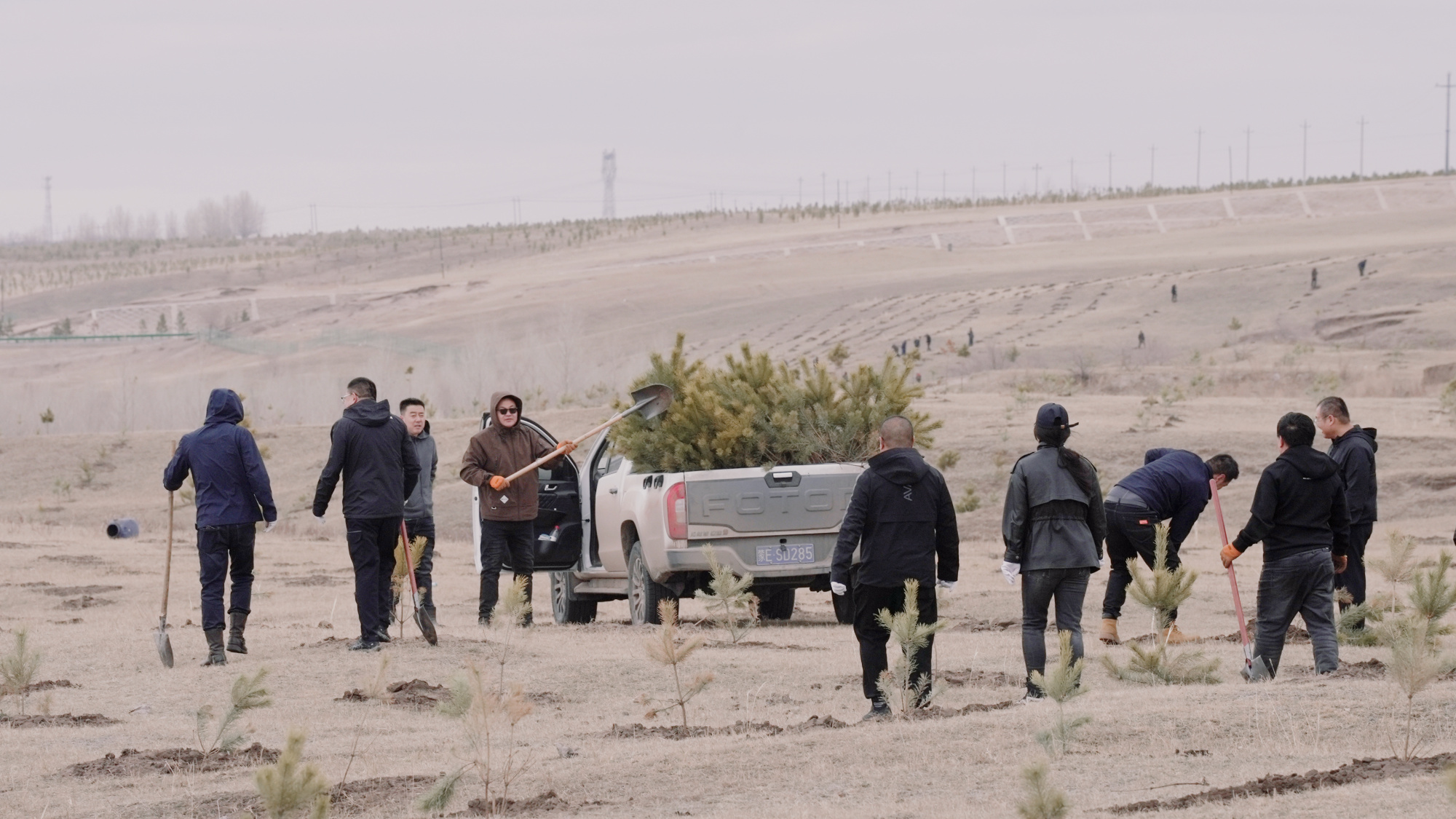 巴彦托海镇团结嘎查义务植树工程开始栽植树苗(韩哲 摄)
