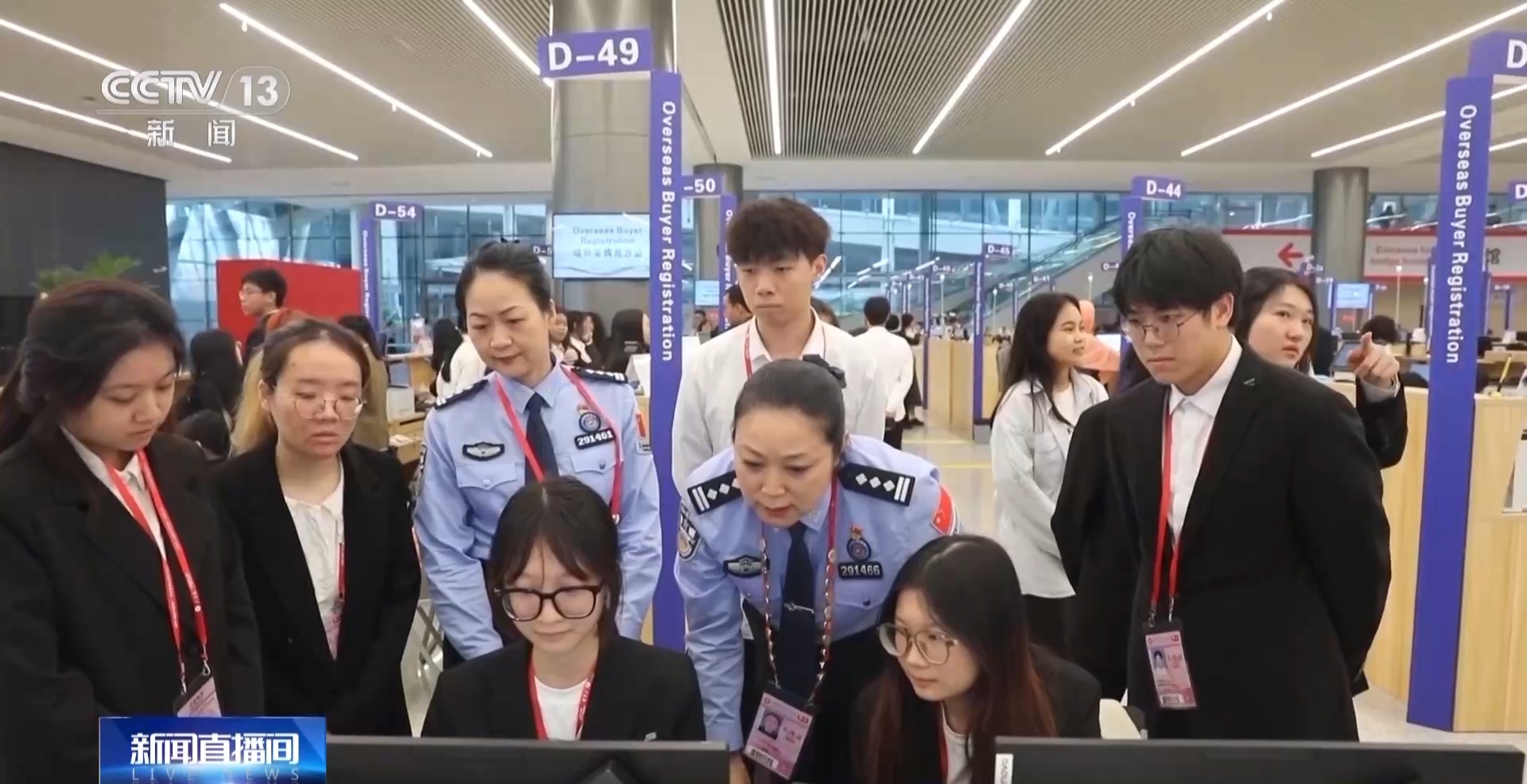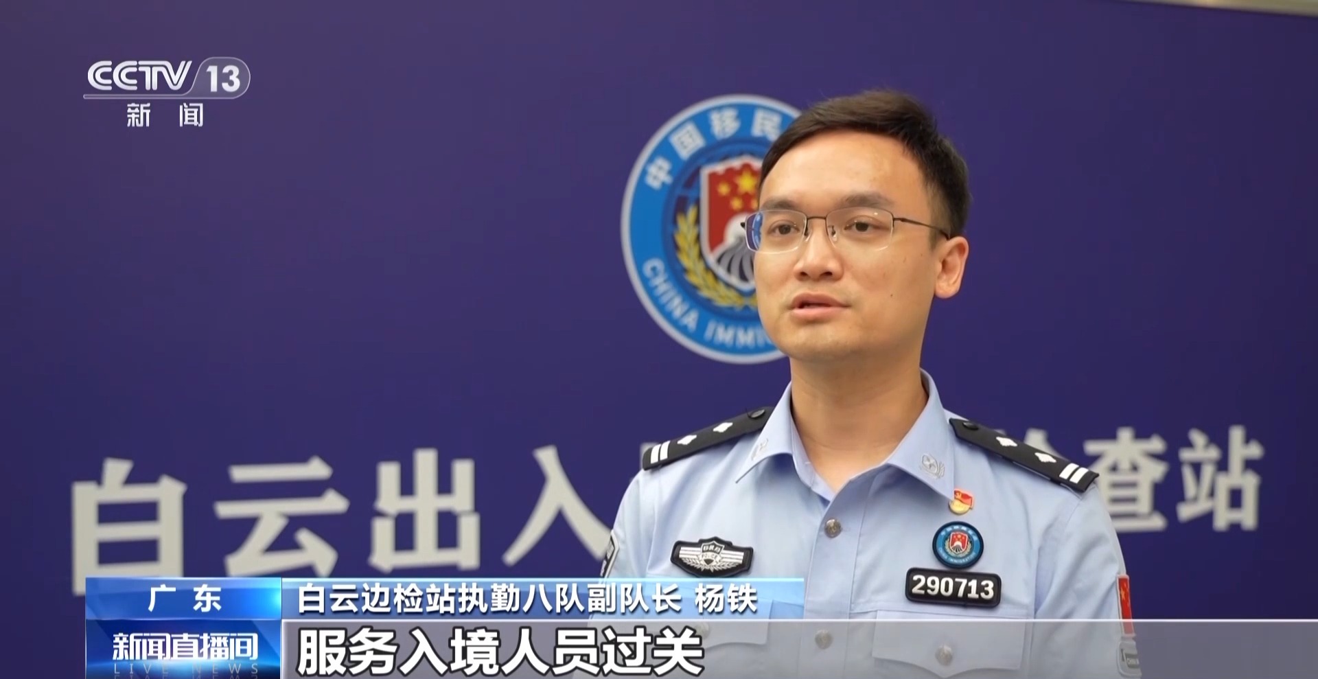 白云边检站执勤八队副队长 杨铁:其中设置了8个广交会专用通道,同时组建了含有英、法、俄、阿拉伯等13种语言翻译的服务队,服务入境人员过关,便利来华展商顺畅通关。