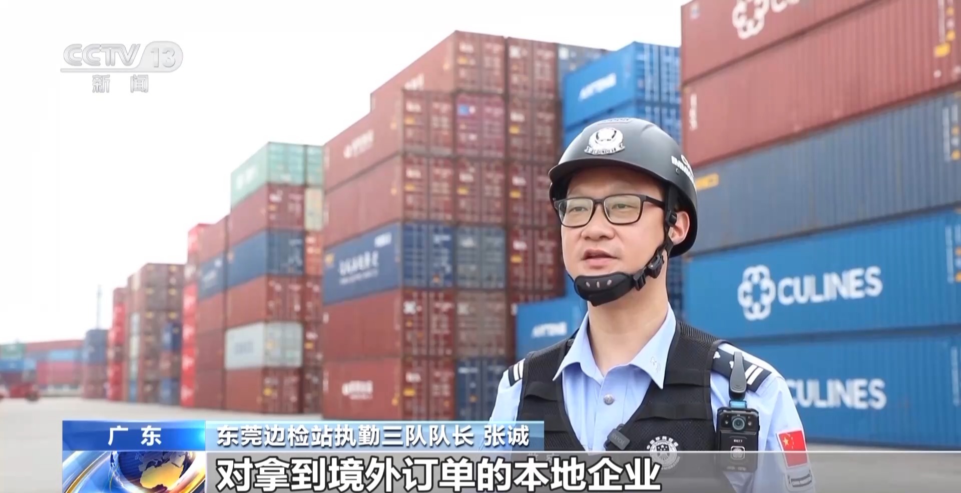 东莞边检站执勤三队队长 张诚:对拿到境外订单的本地企业,提供7X24小时随到随检通关服务,确保出入境船舶“零等待”作业、“零延时”通关,全力为广交会“莞货莞出”保驾护航。