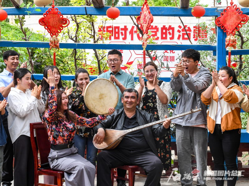 4月24日,在位于柯坪县盖孜力克镇盖孜力克村的文化大院内,当地群众唱着歌,欢快的歌声感染了现场观众。