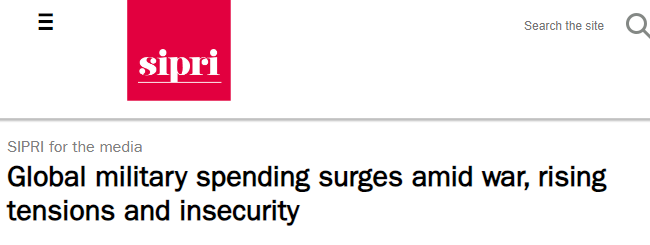 SIPRI军事开支和武器生产项目研究员洛伦佐·斯卡拉扎托(Lorenzo Scarazzato)表示,军费开支的空前增长直接反映了全球和平与安全情况的恶化。在各国优先考虑军事力量的同时,它们面临着“在日益动荡的地缘政治和安全格局中形成的行动-反应螺旋上升”的风险。