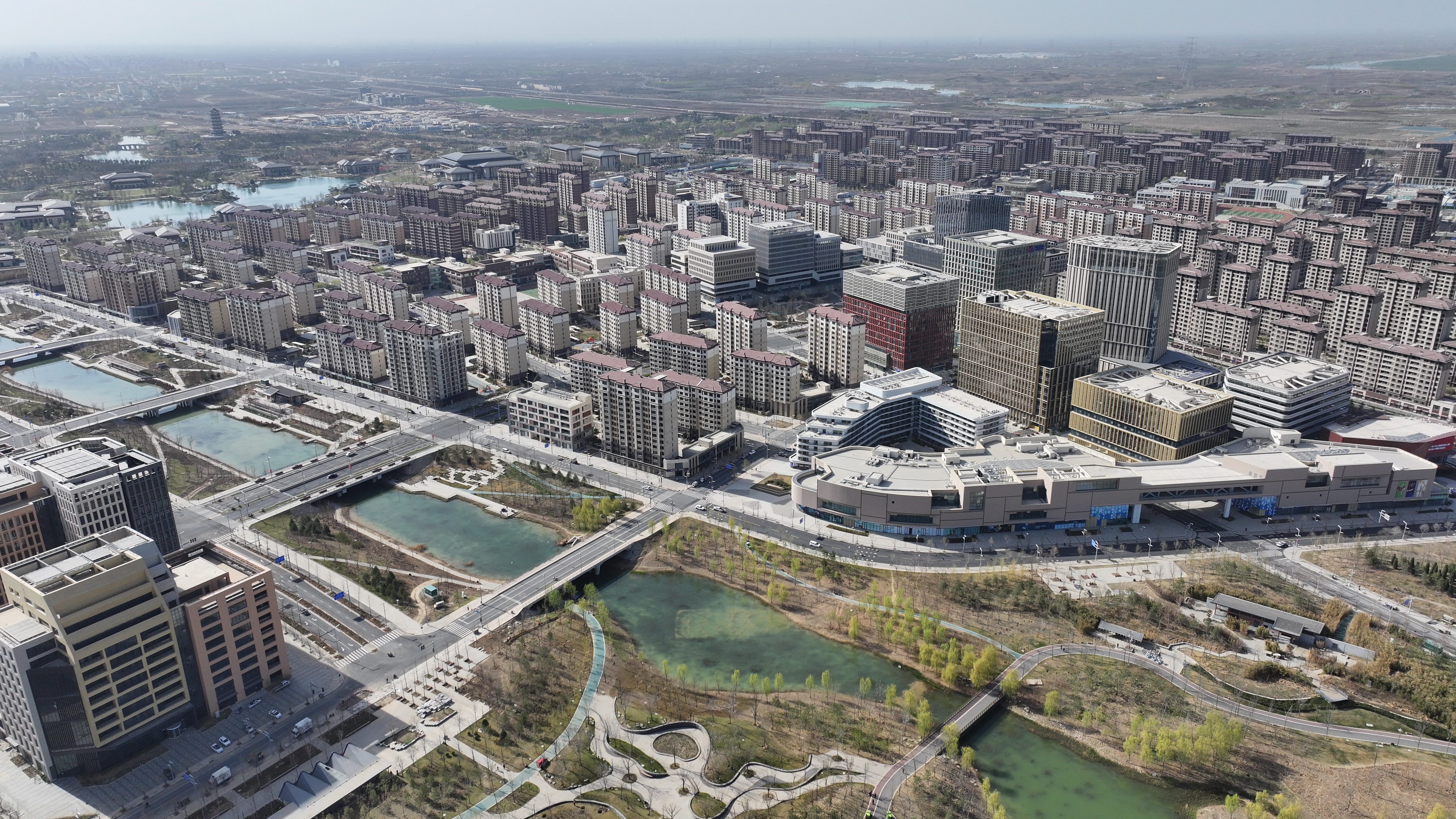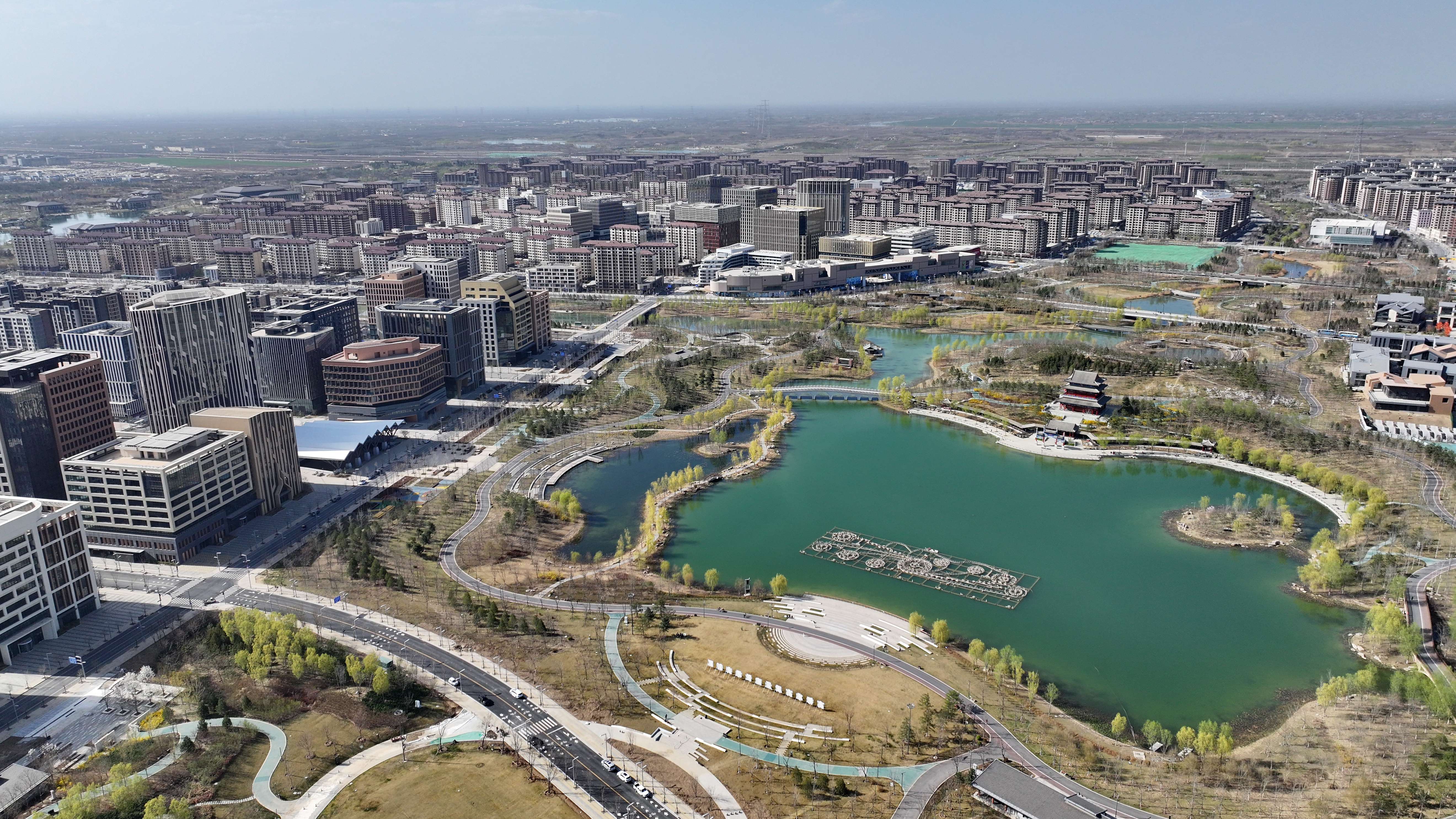 ↑这是雄安新区商务服务中心(3月30日摄,无人机照片)。
